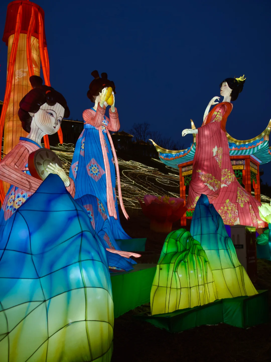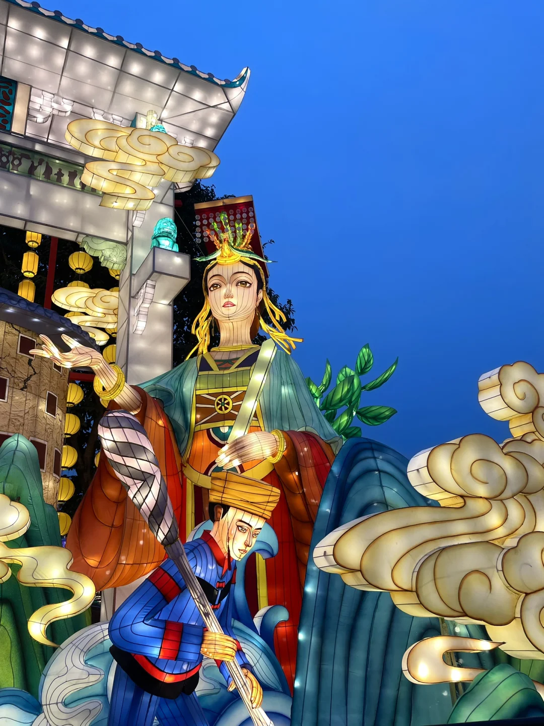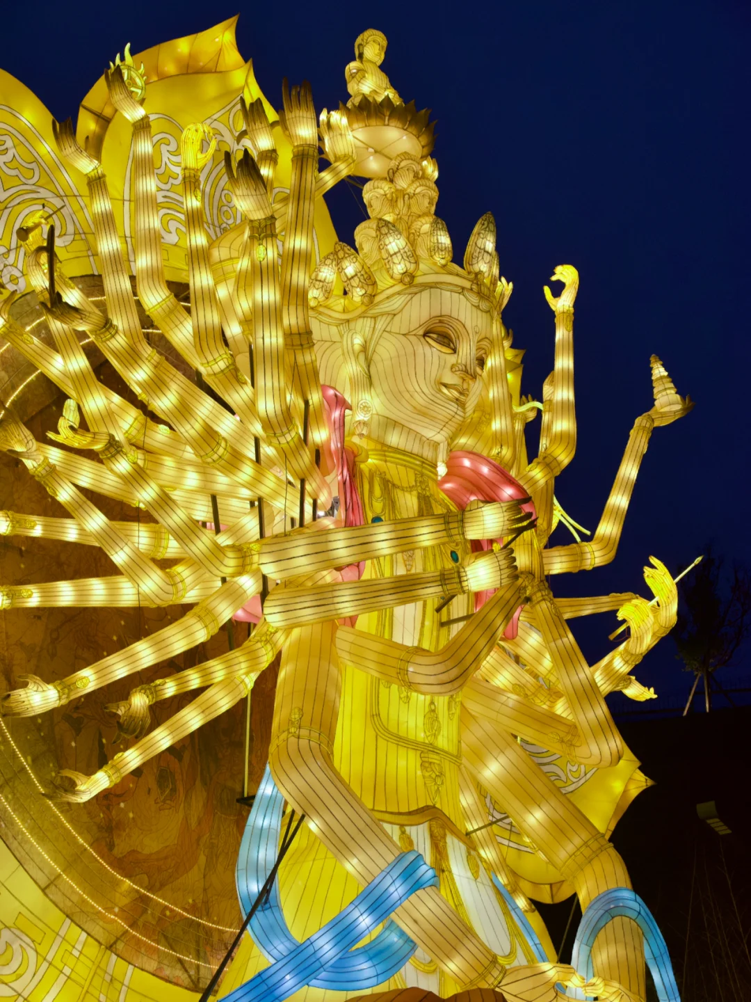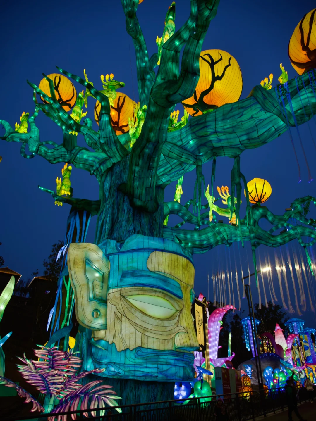 1️⃣《乐享年味》主题区由千灯之门、千灯车站、祈年广场、千灯博物馆四个景点组成。《千灯之塔》融合了历届自贡灯会的“灯王”和来自全球各流派的彩灯样式,《千灯萌兔》高26米、是自贡灯会史上最大的🐇“兔子”。千灯博物馆里面三星堆铜人头像,明代的千手观音,敦煌飞天壁画,唐代簪花仕女图,北宋的千里江山图,这里是文博🏺爱好者的天堂。