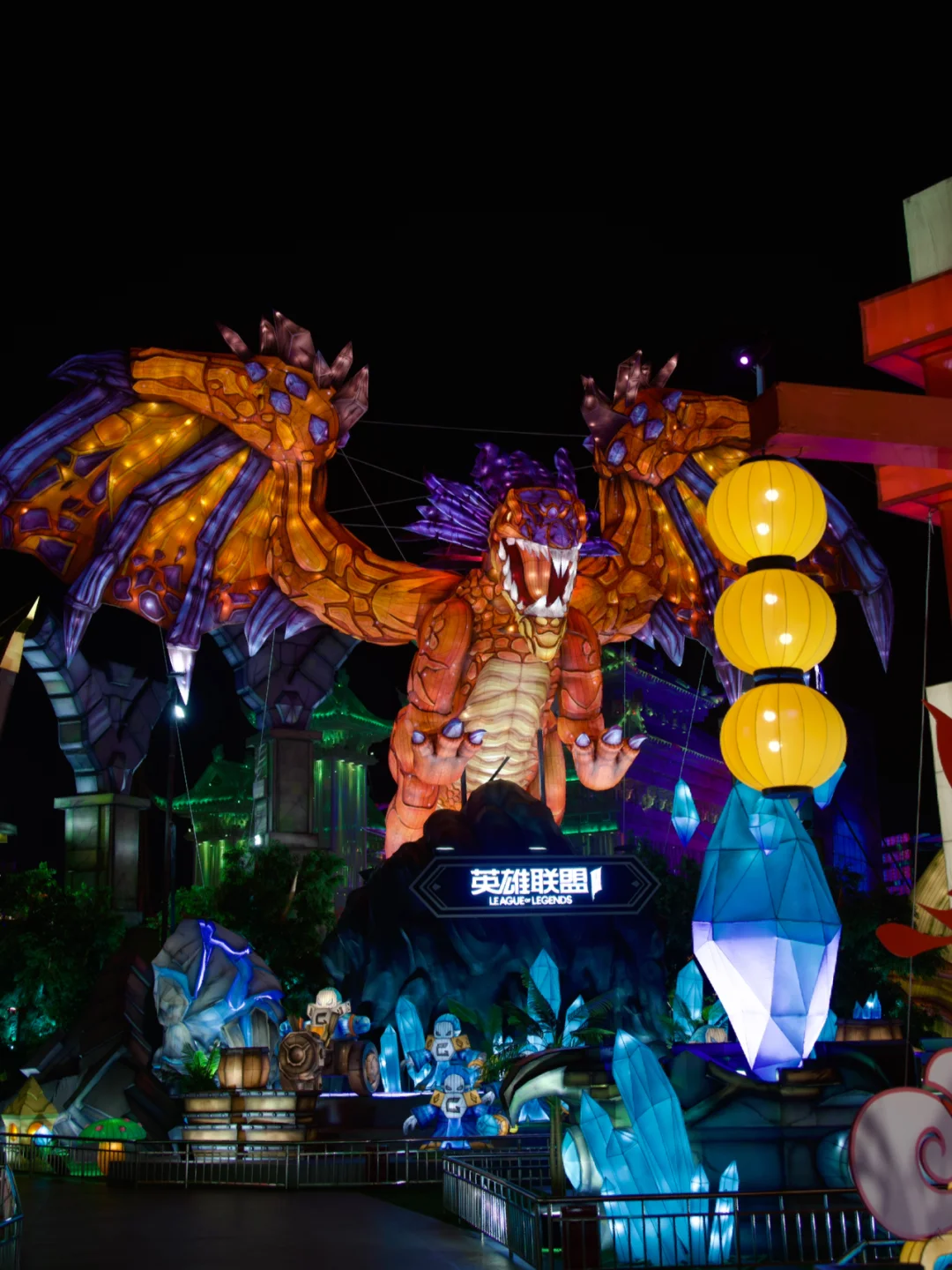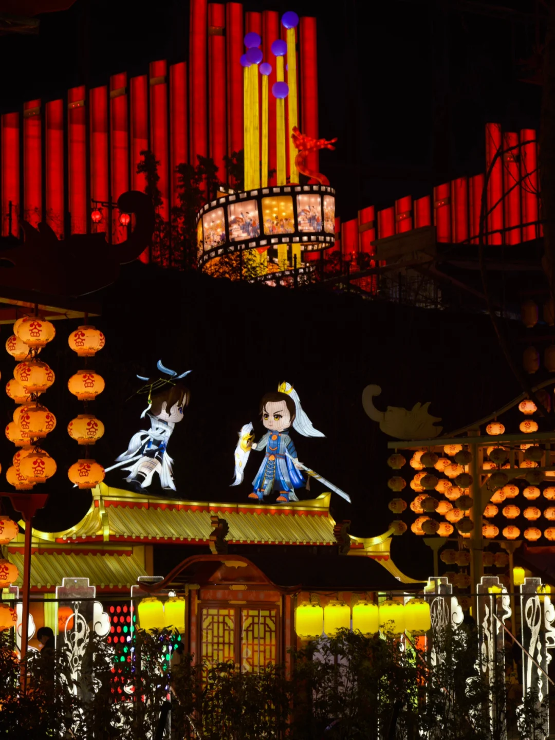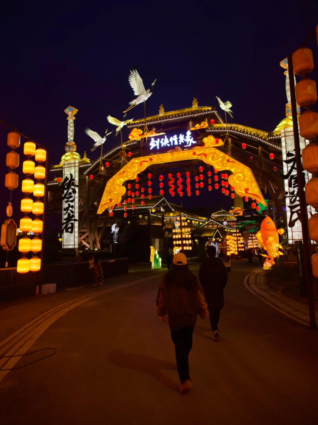 2️⃣《剑侠江湖》由《剑网3》天街灯市主题区、游龙湾、洛神影院三个景点组成,《剑网3》玩家🎮必打卡的主题区,洛神影院入口的魏晋神鸟🐦阵列很好看,抬头就是颜真卿的书法,殿堂感拉满。