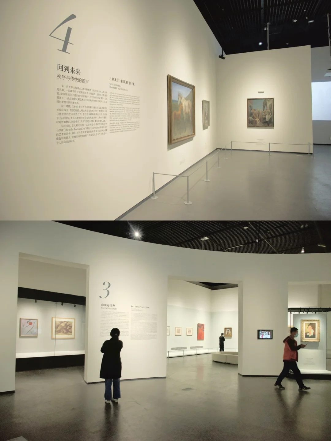 展厅一共分别为:1、现实的信条丨真实与感性的观照;2、在巴黎的天空丨下艺术中心的转移;3、向四方狂奔丨形式与节奏的欢歌;4、回到未来丨秩序与传统的新声;5、不安的画布丨空间与材料的反叛等五个展映单元。🎨
