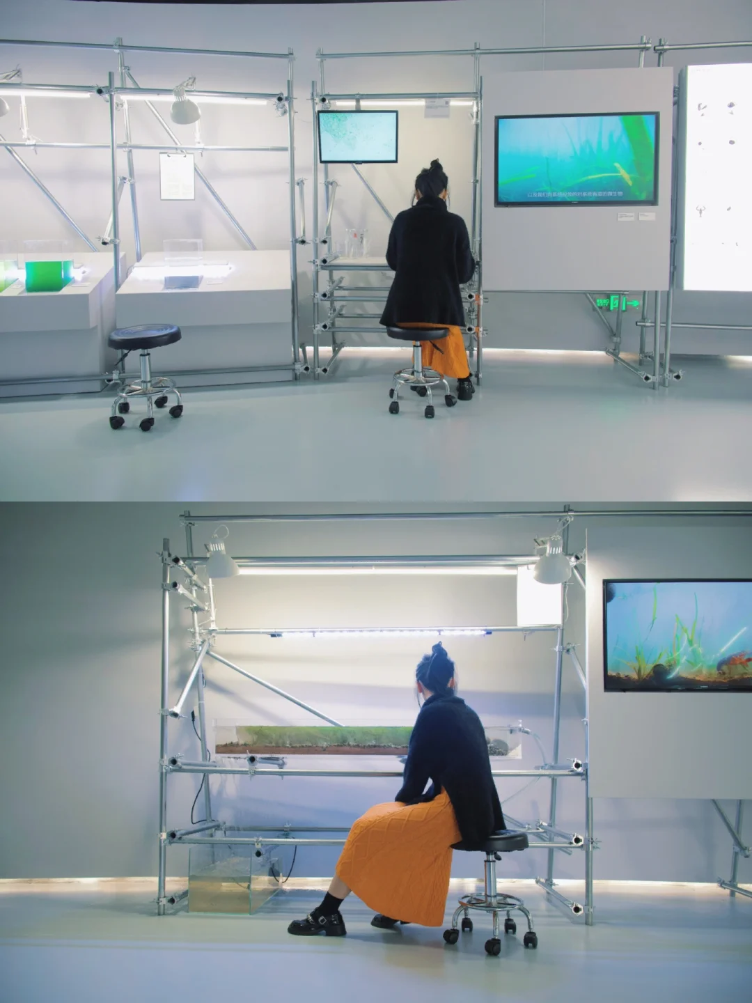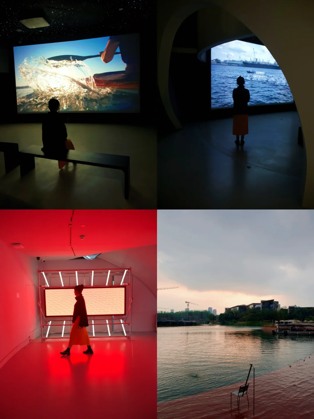3️⃣进门处的模拟水下空间—“溯”(首图),这个装置可以把头伸到塑料罩感受麓湖的游泳🏊♀️视角,尝试表达一种人类难以察觉的不安和脆弱感。