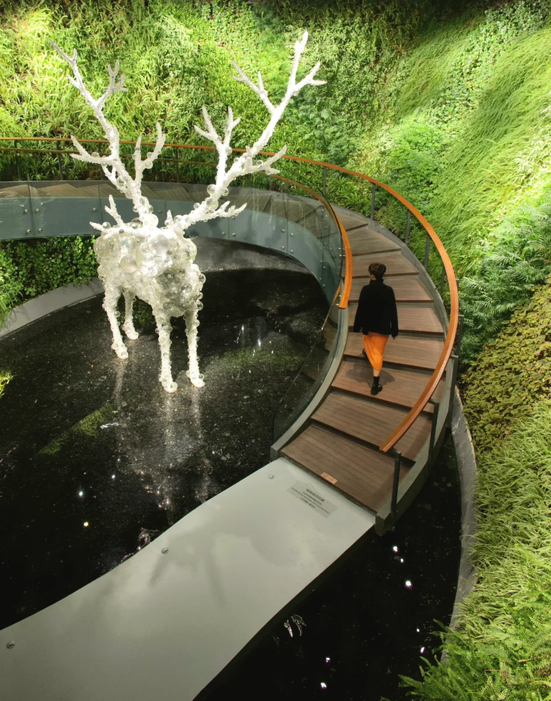 7️⃣展厅最后的有个五米高的水晶鹿鹿装置🦌(图9)可以站在最上面俯拍,被拍摄着在楼梯上,好看出片。