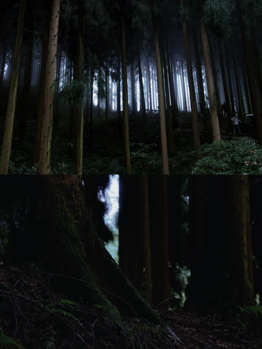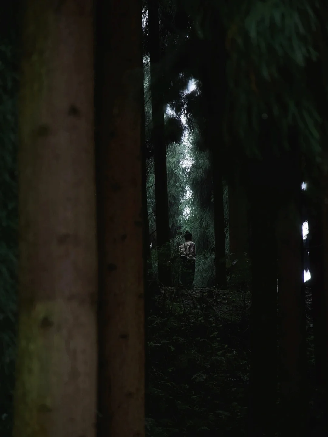4、寻找森林缝隙处,利用💡光源,延伸到拍摄对象(人物、栈道),有两处比较合适,一处在入口进去的左不远处(图1和图4),一处在往里栈道有个小坝子的地方(图5),那儿也是无人机最佳拍摄点(图9);