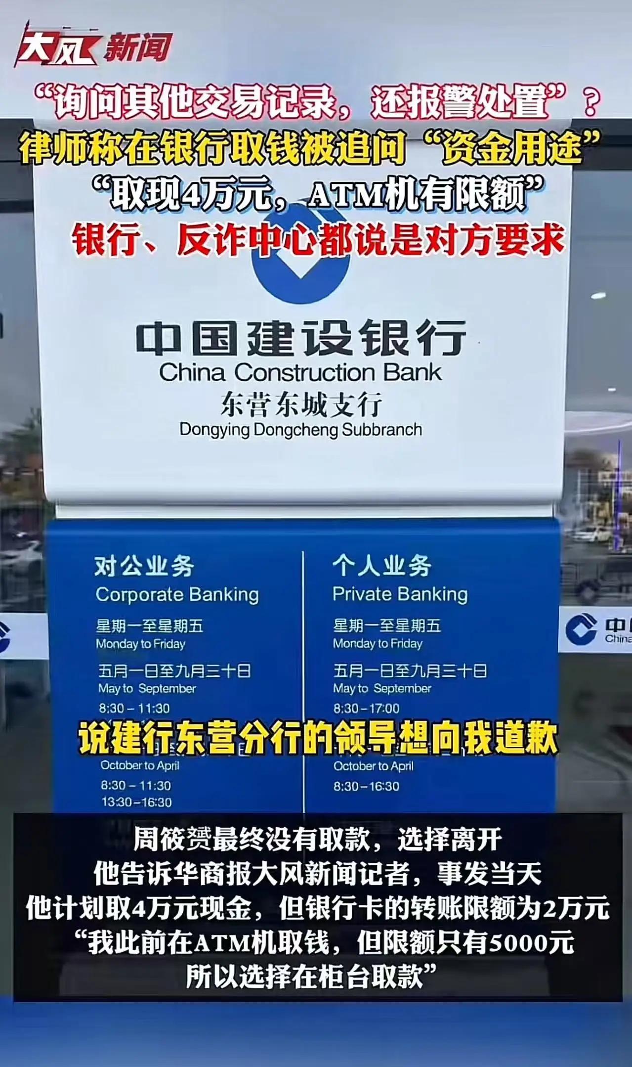 “银行这次碰到硬茬了!”山东东营,律师去银行取4万现金,被追问“资金用途”,律师认为这侵犯自己的隐私权,拒绝告知,银行竟然报案处置!律师这下忍不了,把这事情发到了网上,银行领导低头道歉,但律师觉得事情还没完…… 这起看似普通的取款事件,却在网络上引发了轩然大波,也让人不禁深思:在这个信息爆炸、个人隐私日益受到重视的时代,银行的“追问”是否已经越界?又是否在无形中侵犯了我们的基本权益? 事情的起因很简单:山东东营的一位律师,去银行取了4万现金,结果被银行工作人员追问“资金用途”。作为一名法律人,他本能地觉得这是对个人隐私的侵犯——毕竟,钱的数额再大,也不应成为被无端盘问的理由。更何况,作为专业人士,他知道,个人的财务信息属于个人隐私,银行没有义务也没有权利随意追问。 然而,银行的反应却出乎意料:他们不仅没有理解,反而直接报警,将事件升级。这一行为让律师忍无可忍,他将事情曝光在网上,声援自己的权益,也引发了公众的热议。银行领导在事后低头道歉,但这件事似乎还远未结束。 为什么会出现这样的“硬碰硬”?其实,背后隐藏着的是金融机构在信息管理上的“盲点”与“焦虑”。银行为了反洗钱、反恐怖融资,确实需要对大额资金进行一定的监控和核查,但这绝不意味着可以随意追问客户的资金用途,更不意味着可以侵犯个人隐私。银行的行为,似乎走在了法律与道德的边缘,甚至让人质疑:他们是否在用“安全”作为借口,忽视了客户的基本权益? 这件事情折射出一个更深层次的问题:在现代社会,个人隐私的边界在哪里?金融机构应当扮演怎样的角色?我们每个人都希望自己的隐私得到尊重,但在实际操作中,是否有人在无形中被“绑架”在了“安全”的名义下?我们也不禁想问:如果换作普通人,面对银行的追问,是不是也会觉得不舒服甚至愤怒? 这不仅仅是一次普通的取款事件,更是一次对“隐私权”与“安全保障”之间界限的讨论。我们期待的是一个既能保障国家安全,又能尊重个人权益的平衡点。毕竟,法律赋予我们隐私权,是为了让每个人都能在这个社会中拥有一份属于自己的空间,而不是被无端“审问”和“追查”。 最后,想象一下:如果每个人都像这位律师一样,勇敢地为自己的权益发声,社会会变得多么不同?我们需要的不仅是法律的保护,更是社会对个人尊重的共识。让我们共同呼吁:在追求安全的同时,也请给个人一点空间和尊重。毕竟,只有当每个人都能安心生活,社会才能真正走向和谐与正义。东营律师 律师调查流水 济南遗产律师