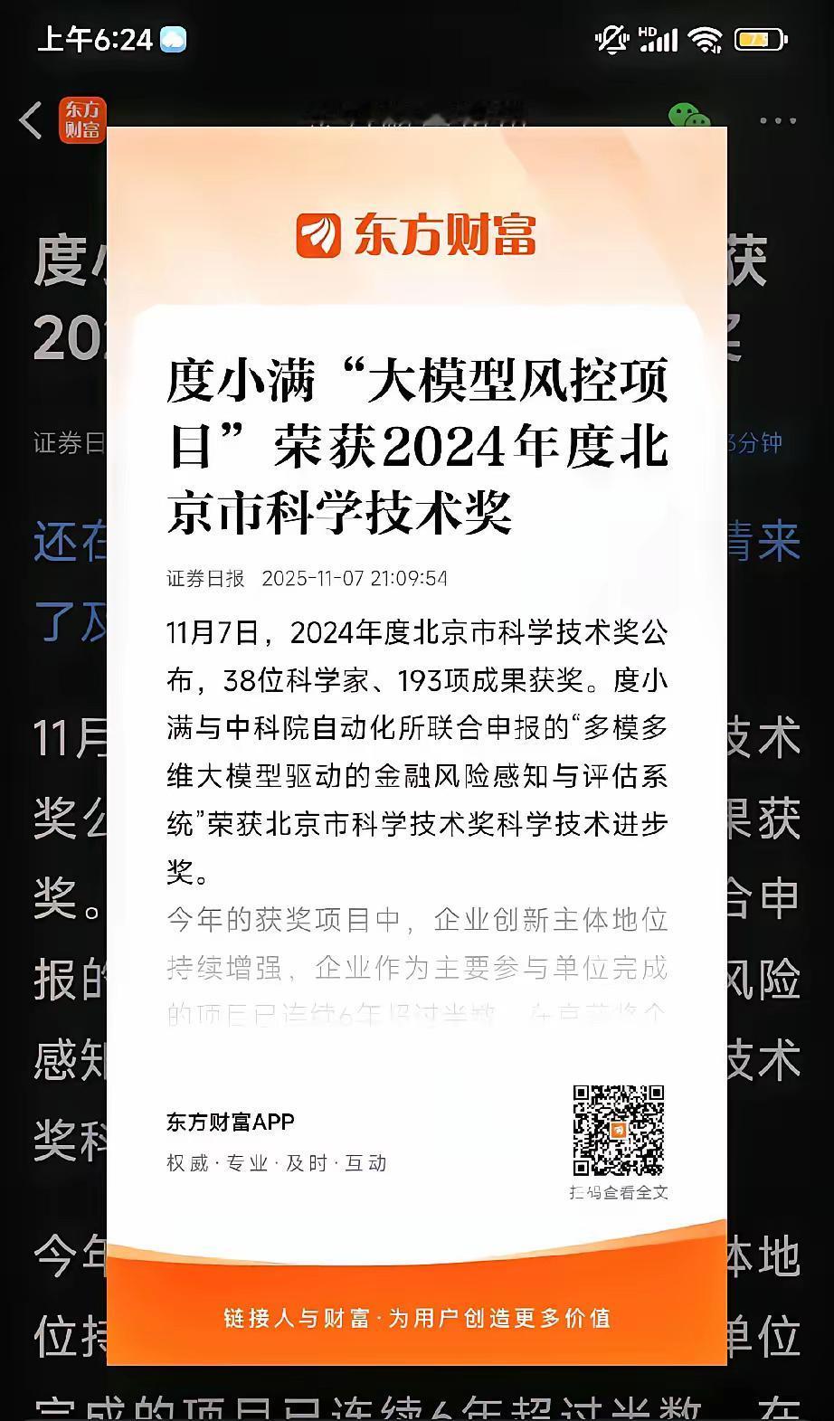 恭喜度小满,荣获2024年度,北京市科学技术奖! 放贷公司能有这个成就,很了不起!