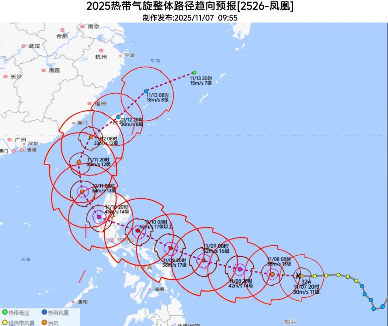 台风凤凰,下周登陆影响我国 目前位于菲律宾以东洋面台风凤凰发展增强,从最新来看正在卷眼,底层眼墙正在构筑,未来强度要看台风自身整合速度。路径方面机构和AI模型有所南调,10~11日登陆穿过菲律宾吕宋岛可能避开吕宋岛高山,之后进入南海朝西北偏北方向移动,12日转向东北偏北逐步向台湾靠近并登陆。受台风凤凰影响,预计12~13日广东东部,福建,浙江,上海等有明显风雨天气过程,有中到大雨,局部暴雨过程。台湾有暴雨到大暴雨,局部特大暴雨。 天气 台风