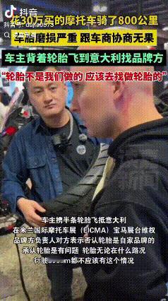 遇到狠人了!一位博主花30万在4S店购买了一辆宝马摩托车,结果只行驶了800公里,轮胎就出现了严重的磨损,找到4S店商讨没有结果,男子干脆办了签证,背着半条轮胎飞到意大利米兰摩托车展,找到宝马总部维权去了。结果品牌方负责人说“轮胎不是我们做的,应该去找做轮胎的”。 这事在网上炸开了锅。有人觉得车主够“硬核”,30万的车说维权就维权,还跨国去找品牌方,这勇气一般人真没有。但也有人觉得,轮胎确实不是宝马生产的,车主找宝马总部维权,是不是找错了对象? 国内4S店一开始还承认轮胎磨损异常,可送检后就把责任推给“路况和驾驶习惯”,拒绝质保。车主自己花钱去送检,还没第三方机构愿意出正式报告,协商俩月也没进展,换个轮胎还得自掏近万元。搁谁身上,这心里能舒服吗? 到了意大利米兰摩托车展,车主背着半条磨损的轮胎去找宝马品牌方,对方负责人倒也承认轮胎有问题,说正常情况下行驶800公里不该这样,但又强调轮胎不是宝马做的。这就让人有点懵了,车是宝马的,轮胎是原厂配的,出了问题,宝马就把自己摘干净了? 网友们吵得更凶了。一部分人觉得,品牌方这种甩锅行为太气人,既然轮胎是原厂配备的,宝马就该负责到底,不能因为不是自己生产的就不管了。另一部分人则觉得,车主维权找错了门,应该去找轮胎厂商,找宝马确实有点“冤大头”。 可反过来想,车主是买了宝马的车,才用到这个轮胎的。要是轮胎厂商在国外,普通消费者上哪去找?找宝马总部,不就是因为相信品牌的影响力,觉得能讨个说法吗?结果品牌方来这么一出,换谁不寒心。 这事儿也暴露了不少问题。国内维权难,第三方鉴定机构不敢出报告,商家互相甩锅。消费者花了大价钱买个车,出了问题想维权,咋就这么难? 现在就看后续怎么解决了。要是宝马总部能真正负起责任,帮车主把轮胎的事儿解决了,那还能挽回点口碑。要是还这么甩锅,估计以后大家买宝马车,心里都得打个问号。 这件事你们怎么看?欢迎留言讨论。 来源:读嘉新闻 2025-11-6