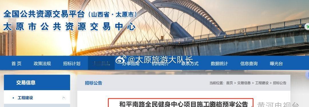 记者从太原市公共资源交易中心获悉,太原和平南路全民健身中心项目施工资格预审公告已发布。 (黄河电视台)