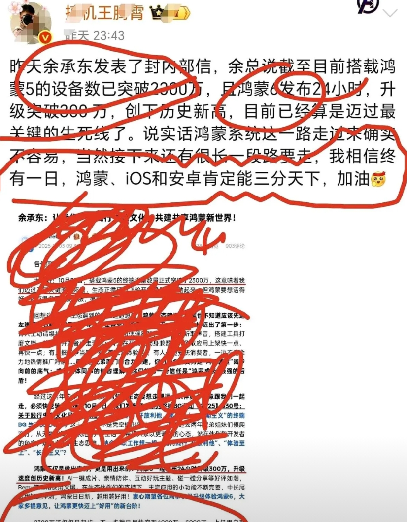 余承东终于说了句让我心里咯噔一下的大实话。 他说,鸿蒙啊,还不行,还扳不过那两家。 目标是……先活下来,然后能三分天下有其一。 我一下就愣那儿了。 说真的,前几年网上那个热闹劲儿,我还以为咱早就双手插兜,站世界之巅了。 什么左脚苹果右脚安卓的,听得我热血沸腾,觉得天底下就这点事儿了。 结果人家当家的自己出来说:同志们,咱刚起步,路还长。 你知道吗,我听完,一点没觉得被打脸,反而有种……莫名的踏实和激动。 真的。 吹牛逼谁不会啊?画大饼谁不会啊? 最难的,就是在全世界的注视下,坦坦荡荡地说一句:“我还不够强,但我的目标是星辰大海。” 这不叫认怂,这叫战略清醒。 一个被逼到墙角的人,没有怨天尤人,没有打肿脸充胖子,而是清清楚楚告诉你,第一步怎么走,第二步怎么走,终点在哪。 这比那些“遥遥领先”的口号,带劲多了。 真的,这才是最可怕的对手。