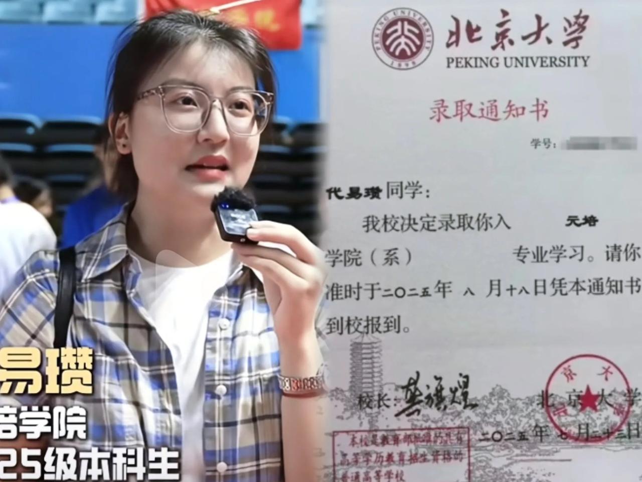 这操作 狠狠打脸了 直接北大元培 724分的学霸代易瓒本是大家眼中的国防科大材料专业“铁娘子”,没想到却选择了北大元培学院,这让很多人都跌破了眼镜。 采访中她表示,自己非常感谢父母给她的支持和陪伴,每一次坚定的选择背后都有父母陪伴的身影。 父母给自己的精神支持和正确引导至关重要。代易瓒能取得如此优异的成绩,与父母的智慧和陪伴是分不开的。家庭就是最好的老师,代易瓒父母无疑是当今社会家庭教育的榜样!