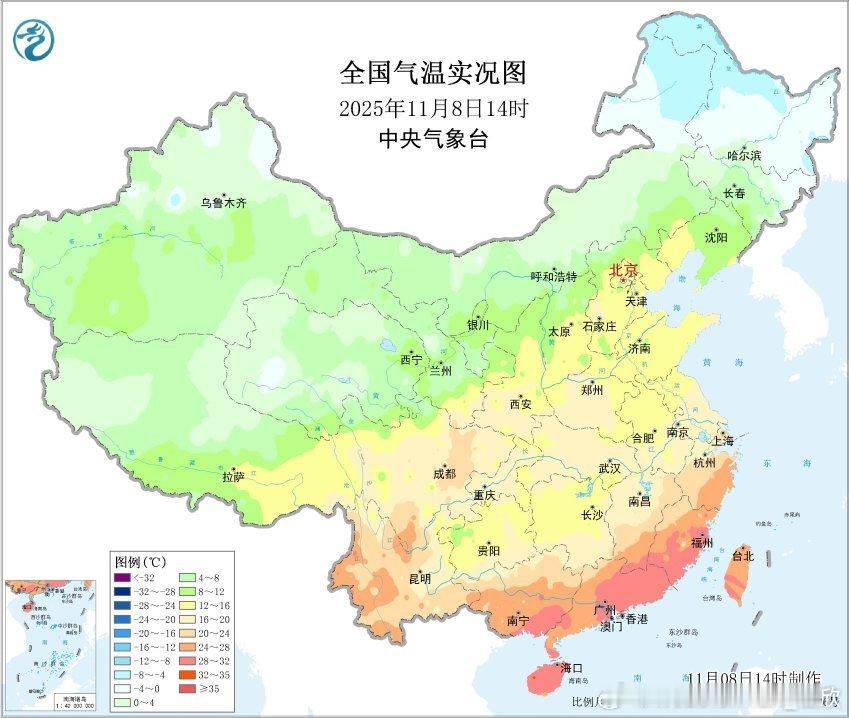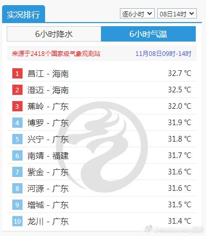 【南北温差大】今天下午,海南广东福建部分站点气温超30℃,还是夏天的感觉。而内蒙古东北部和黑龙江北部多地,气温不到0℃。14点50分,海南昌江和黑龙江黑河(爱辉区),温差超40℃。常年立冬时节,南北的气温差异就很大,按照省平均气温,黑龙江为零下6.7℃,海南为23.5℃,两地冬夏并行。 ​​​