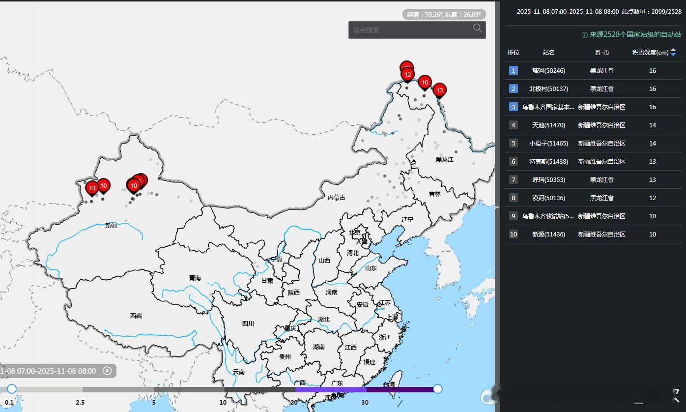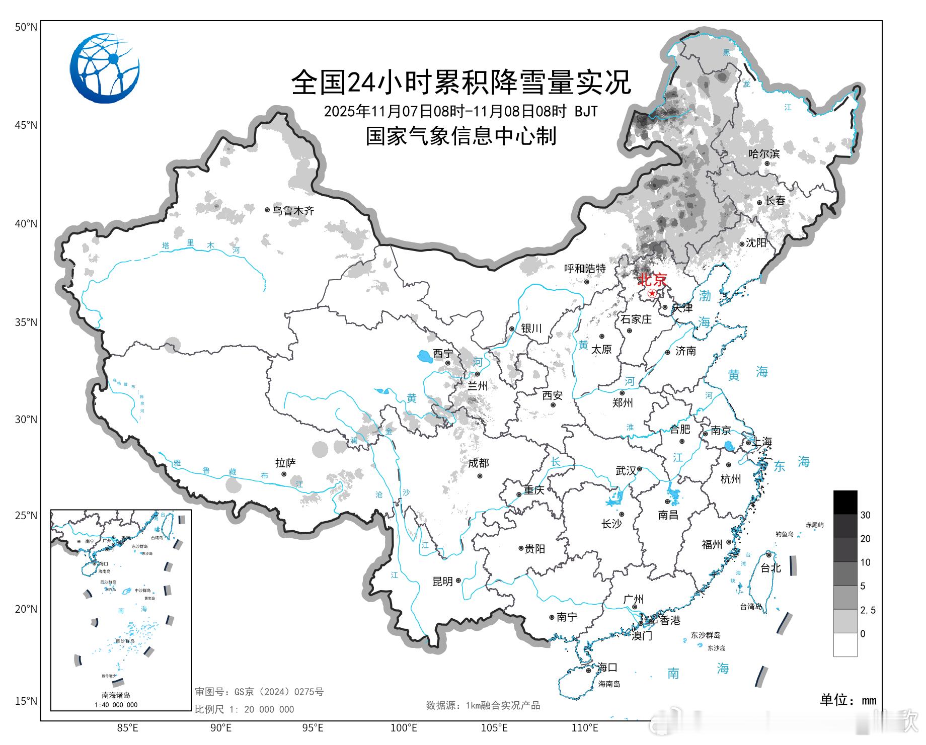 【降水】昨天到今晨,中东部出现大范围降水,内蒙古中东部和东北三省西部等地出现降雪。今晨黑龙江塔河、北极村积雪有16厘米。今明两天,因为高空冷涡影响,内蒙古东北部和黑龙江多地还有降雪。