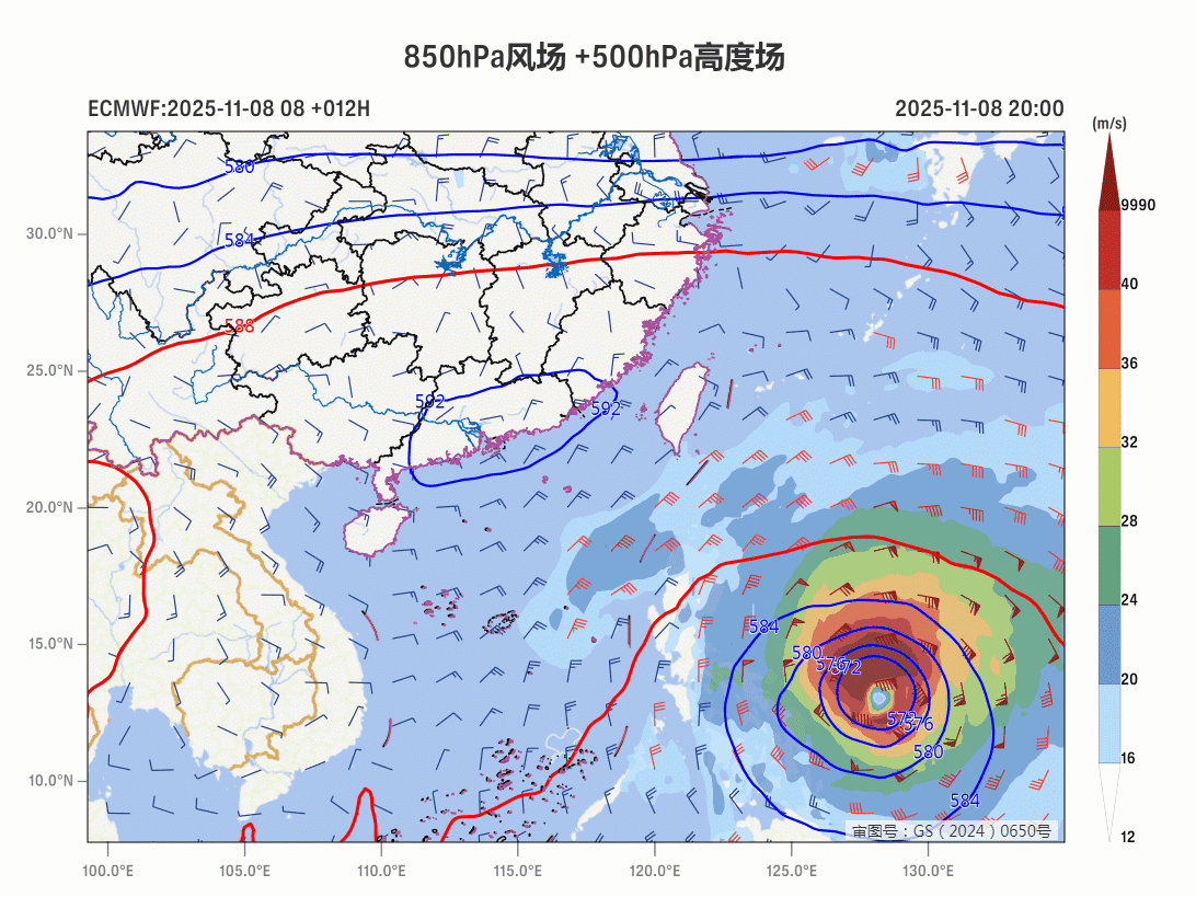 目前中央气象台和日本气象厅以及欧洲数值预报,给出北上转向路径(图2-4)。但如果冷空气偏强,深度南下,破坏台风的暖心,使得台风在近岸减弱,之后在低空东北风的压制下,可能向西南折(图5,美国集合预报部分成员)。而我国数值预报,还给出了另一种可能性,副热带高压断裂后,后期可能再加强西伸,因此引导台风继续西行(图6)。