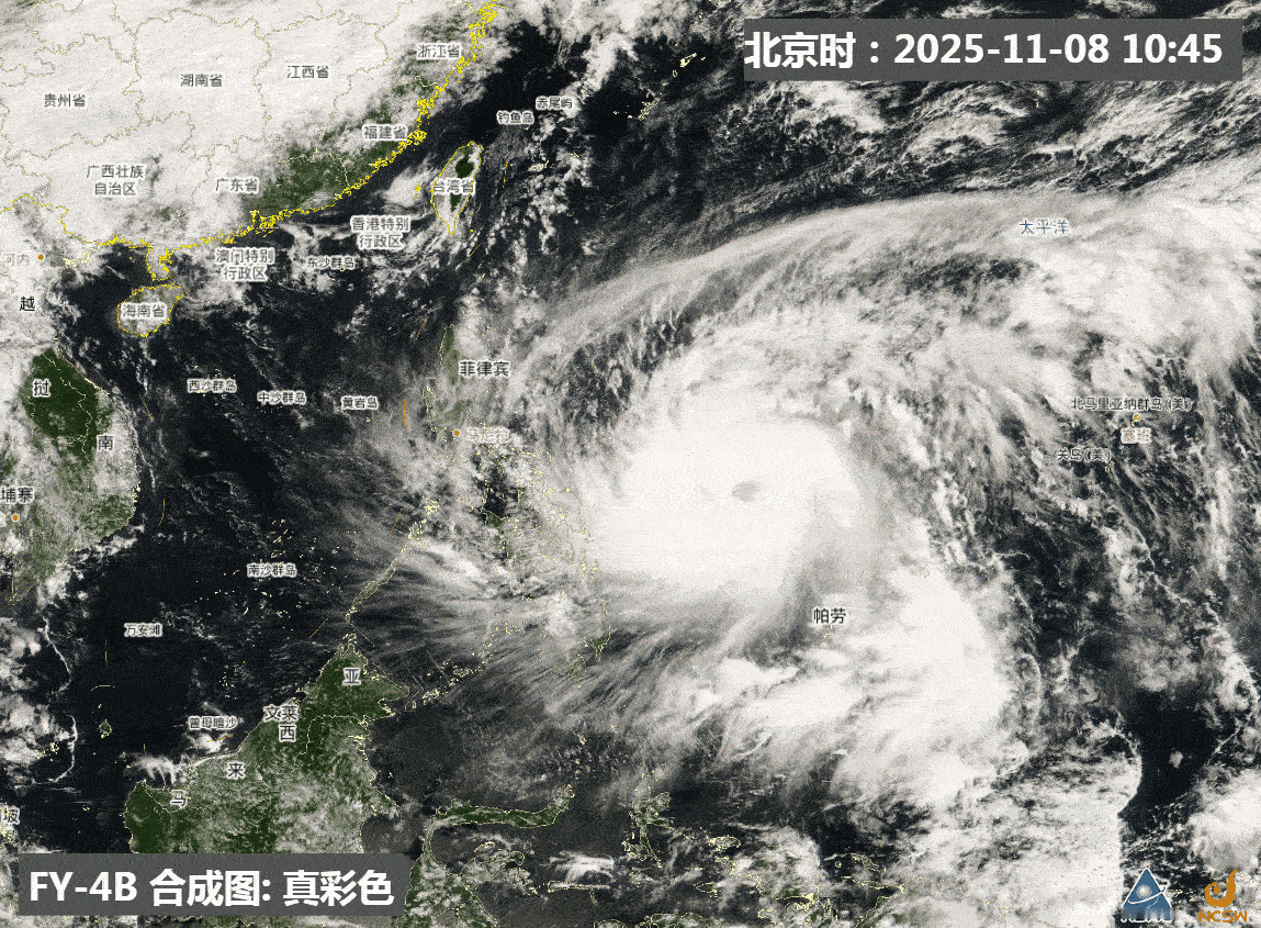 台风凤凰今天白天,凤凰继续增强,已经达到强台风级,云图上可见台风眼,并且眼区也