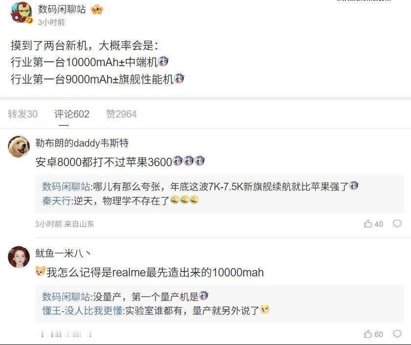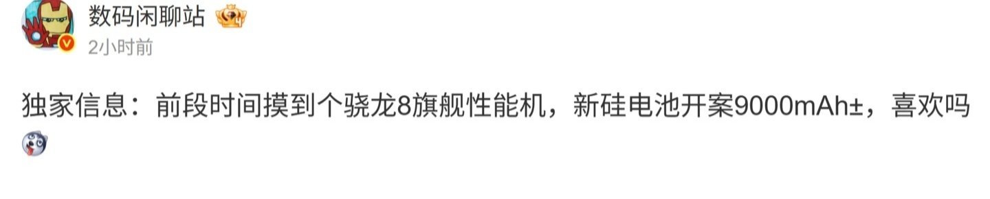 至于另一款“9000mAh± 旗舰性能机”,该博主曾在 10 月 13 日爆料称,摸到一个骁龙 8 旗舰性能机,新硅电池开案 9000mAh±。结合博主文中暗示和评论区用户猜测,预计这款手机是荣耀 GT2。
