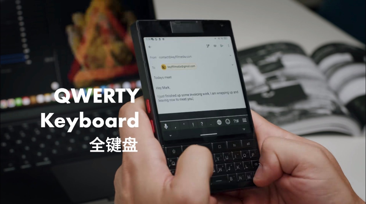 全键盘设计,键盘也是触控板,类似黑莓的 PassPort ,背面还有小屏幕[捂嘴哭]类似小米 17 系列。