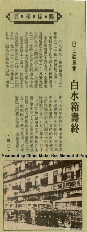 它是香港最古老单层巴士,坊间称作“白水箱”, 得名于车头闪闪发亮的铝制引擎盖。