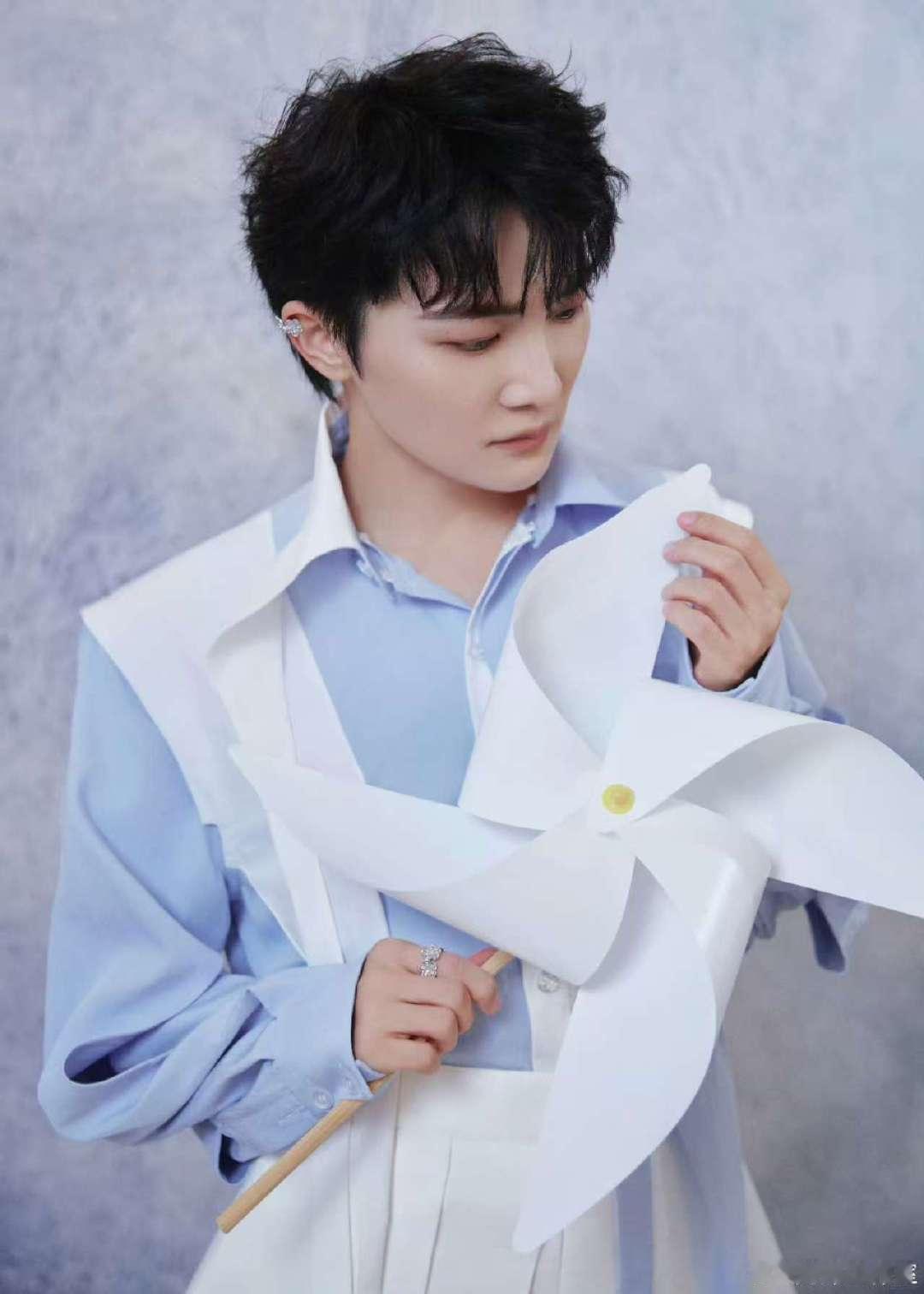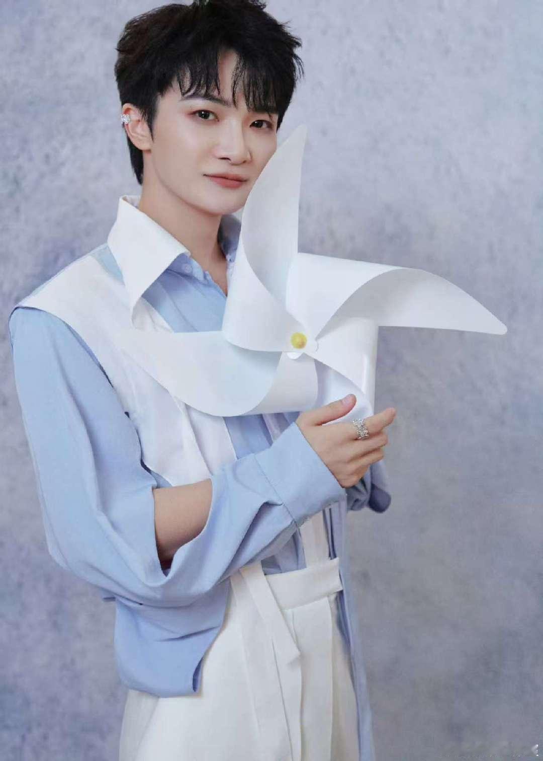 周深风车造型音乐缘计划 周深的风车造型太治愈了!浅蓝色衬衫配白色背带,手里的大风车很有童趣,周深的歌声总能给人带来力量和希望。