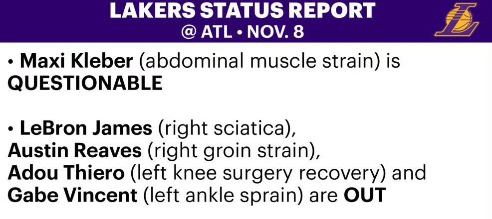 詹姆斯(右坐骨神经痛)、里夫斯(右腹股沟拉伤)、蒂耶罗(左膝手术恢复期)、文森特(左踝缺席比赛。