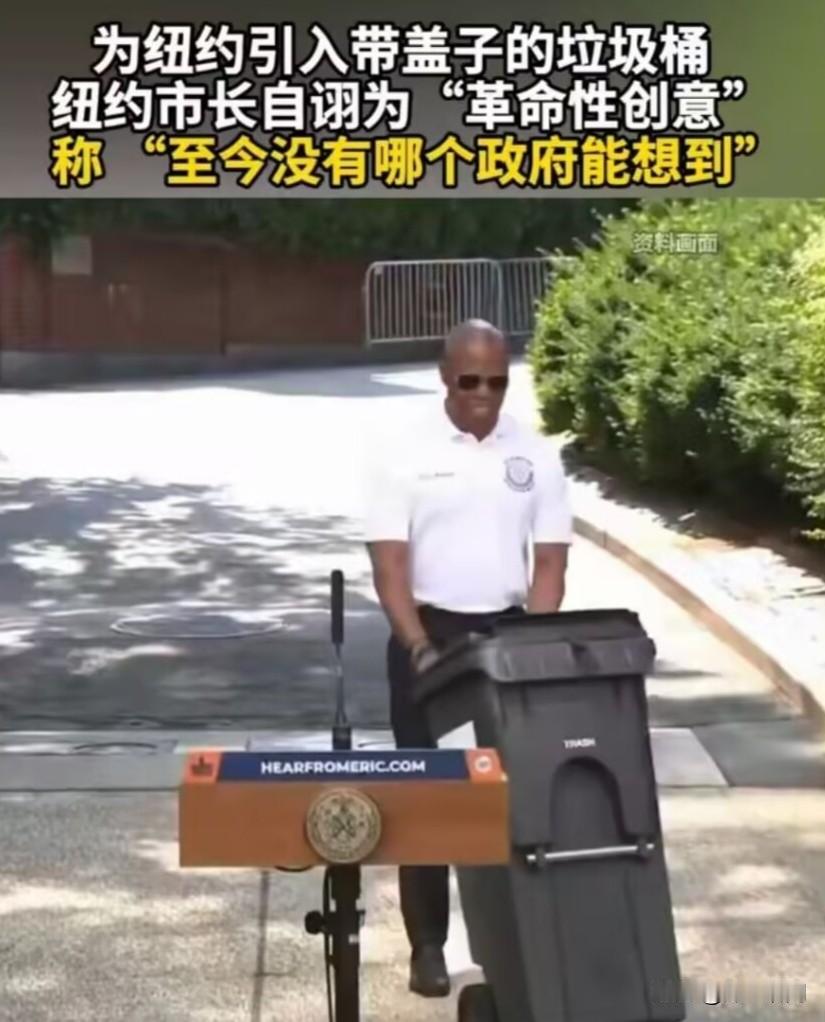 原来他们的垃圾桶一直没有盖子,可能之前一直觉得就是没有盖的;现在纽约引进带盖子的垃圾桶,纽约市长不知道多么兴奋,还说是“革命性创意”,“至今没有哪个政府能想到” 你们这样让那些整天夸美国的人情何以堪啊,难道纽约没有人来过我们中国吗?不知道垃圾桶有各式各样的吗? 还有网友说:终于跟我们村一个水平了,难怪他如此自豪。 下一个是用脚踩一下垃圾桶盖就可以开了,那不是更有创意。 问一下纽约市长这么好的创意,从哪里引进的啊。 纽约市长还知道哪些“革命性创意”的东西呢?