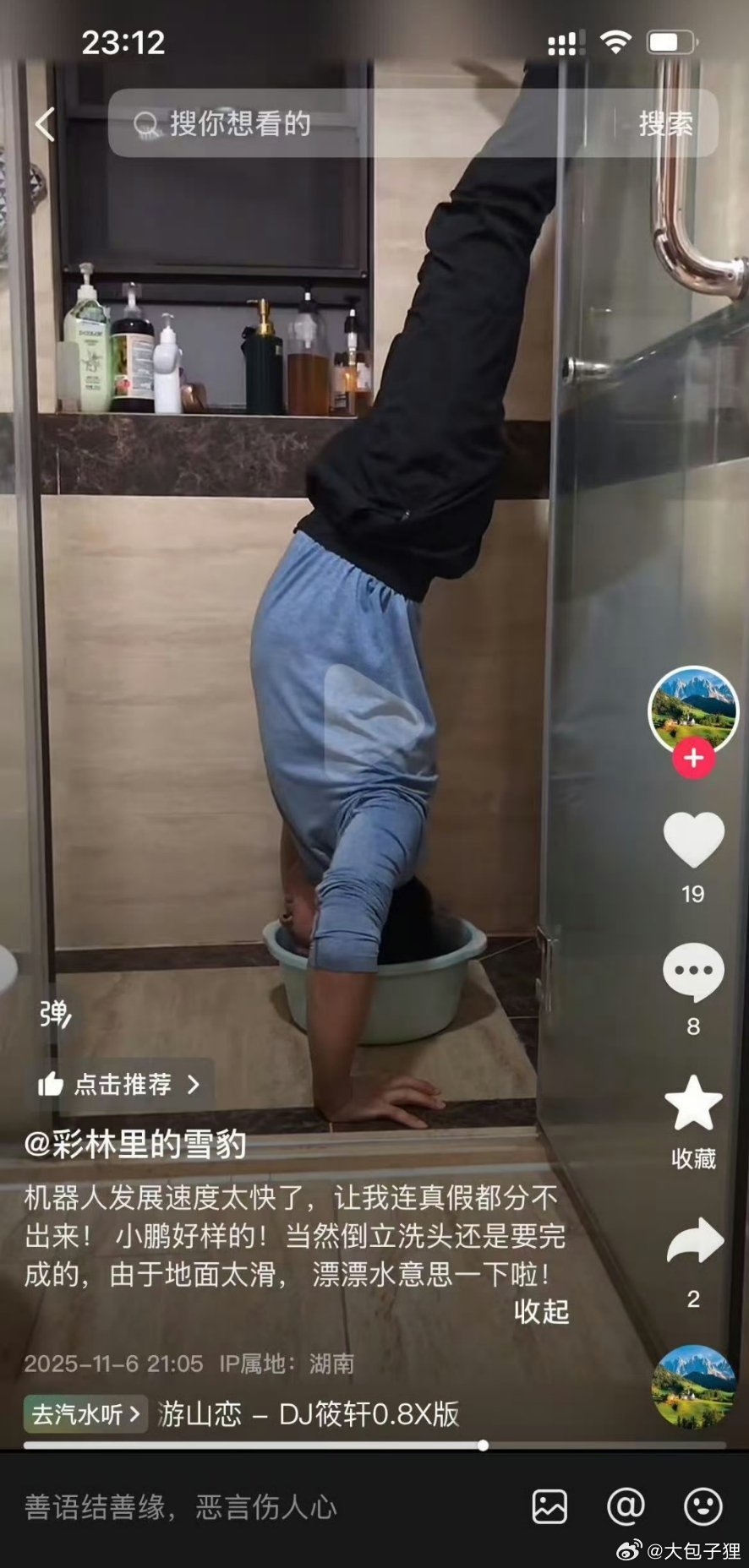 前两天说小鹏机器人如果是真的就要倒立洗头的这位老哥好样的,毕竟兑现了承诺。
