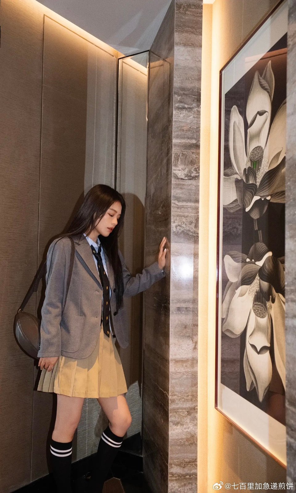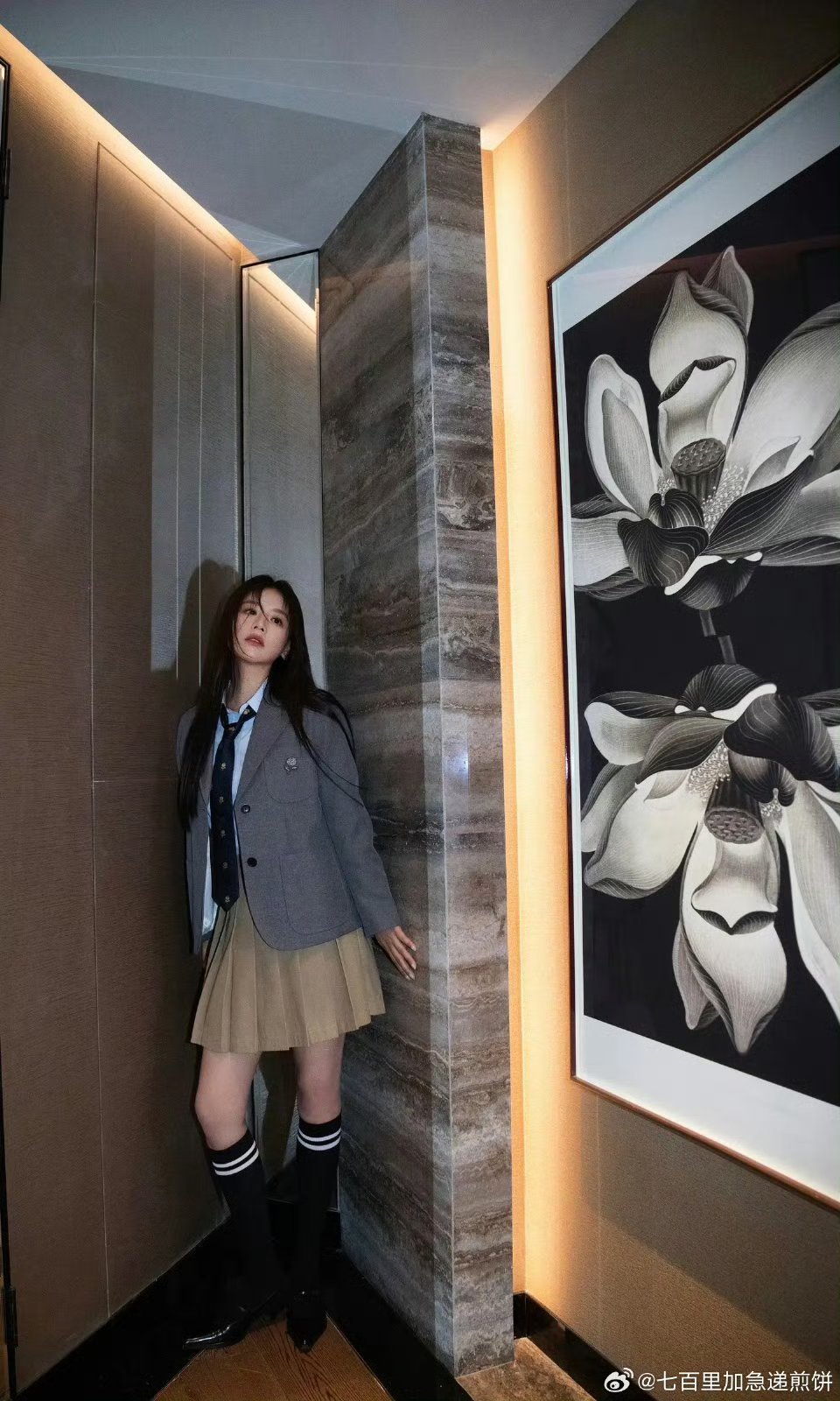 张天爱跟素人合影,胯真的好宽,大宅院似的