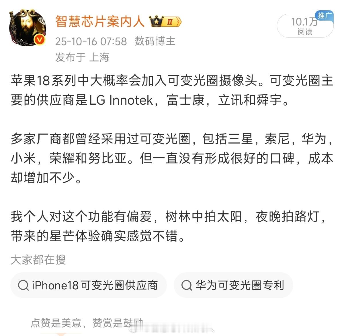明年2亿像素大底主摄会成为主流,可变光圈其他厂商还是要继续观察一代。