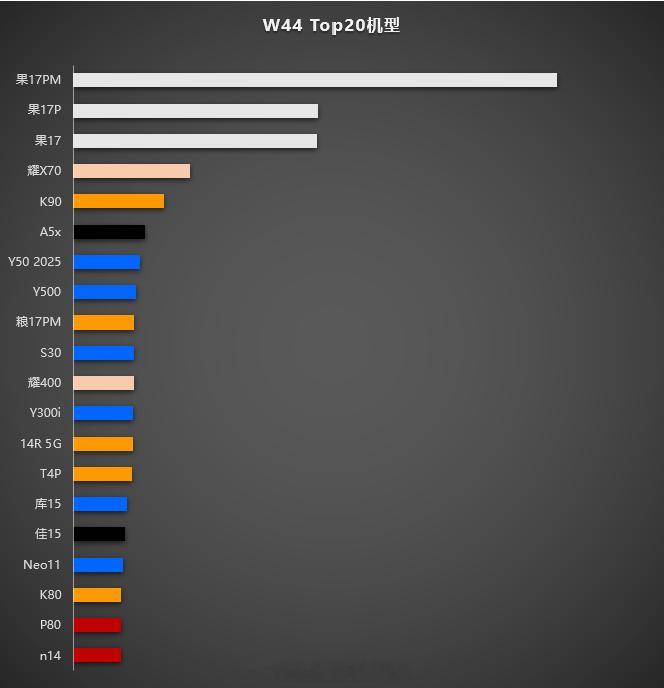 果子3款机型仍然霸榜,3款和后面的top4-top18合计15款机型的出货量相同。