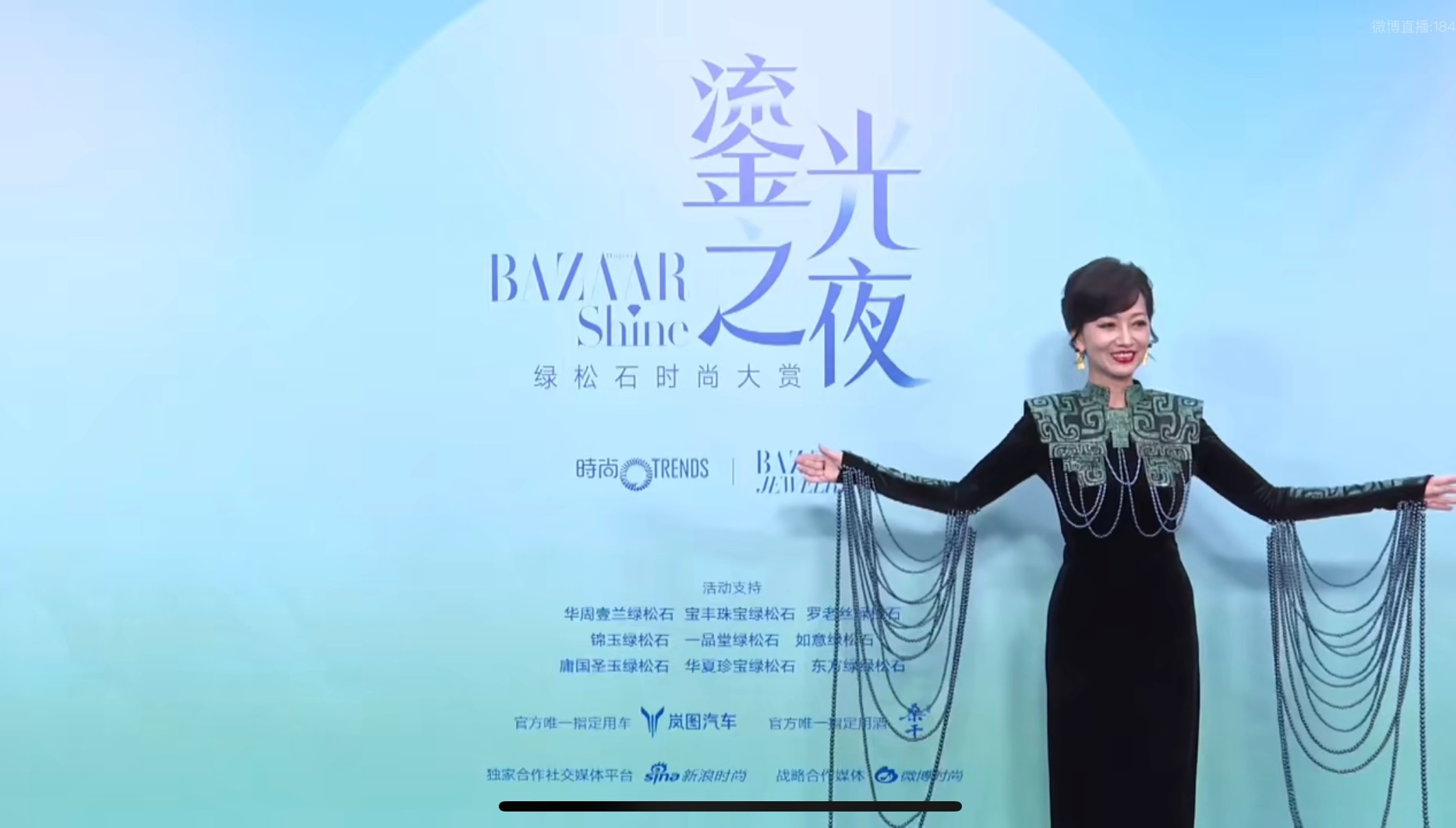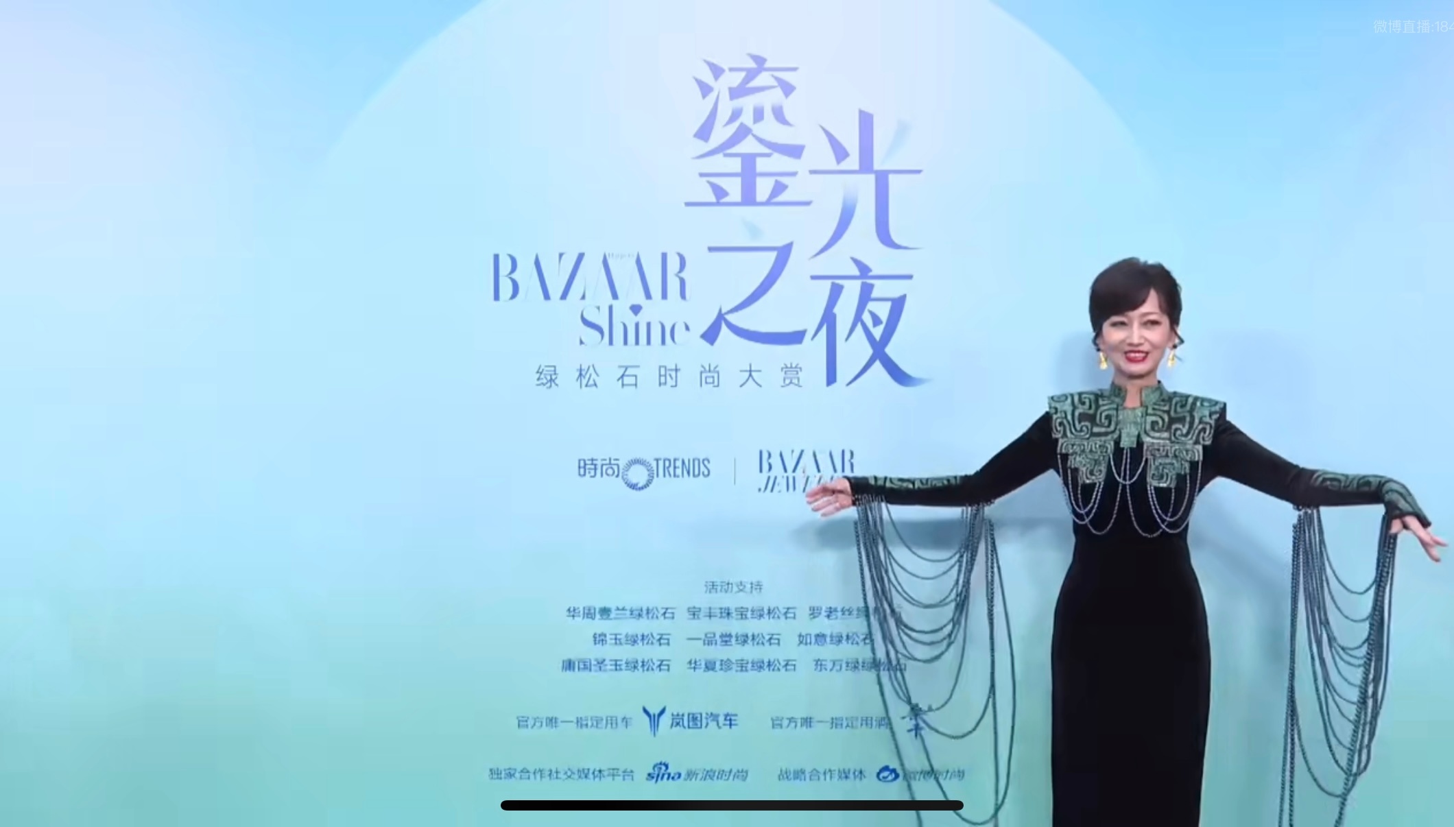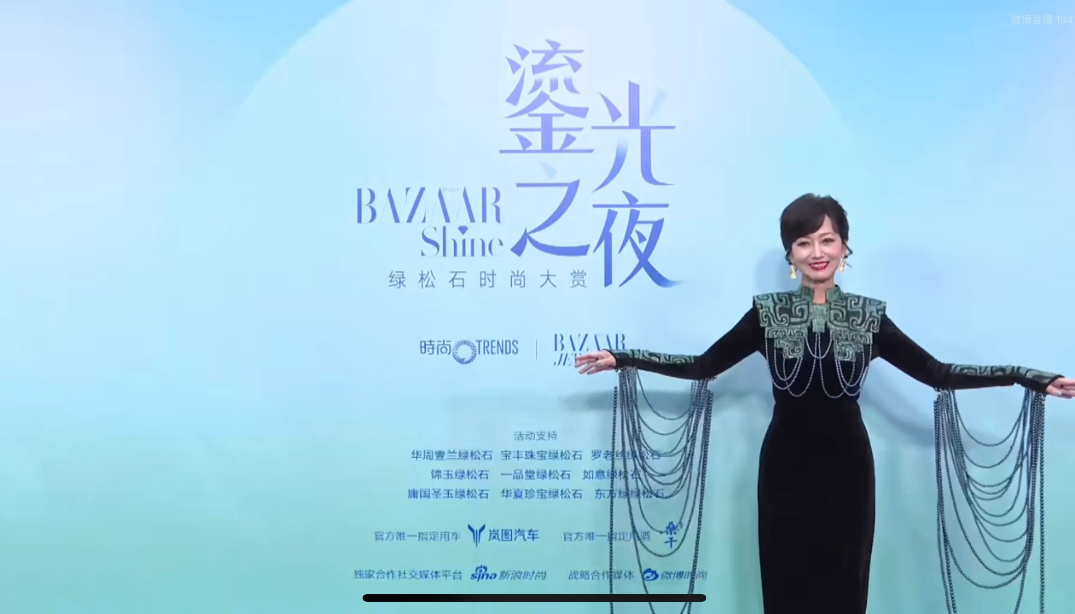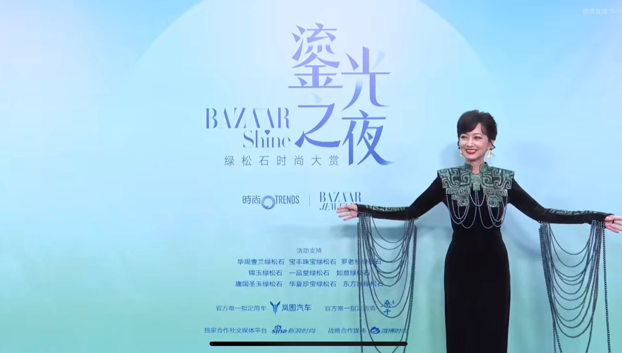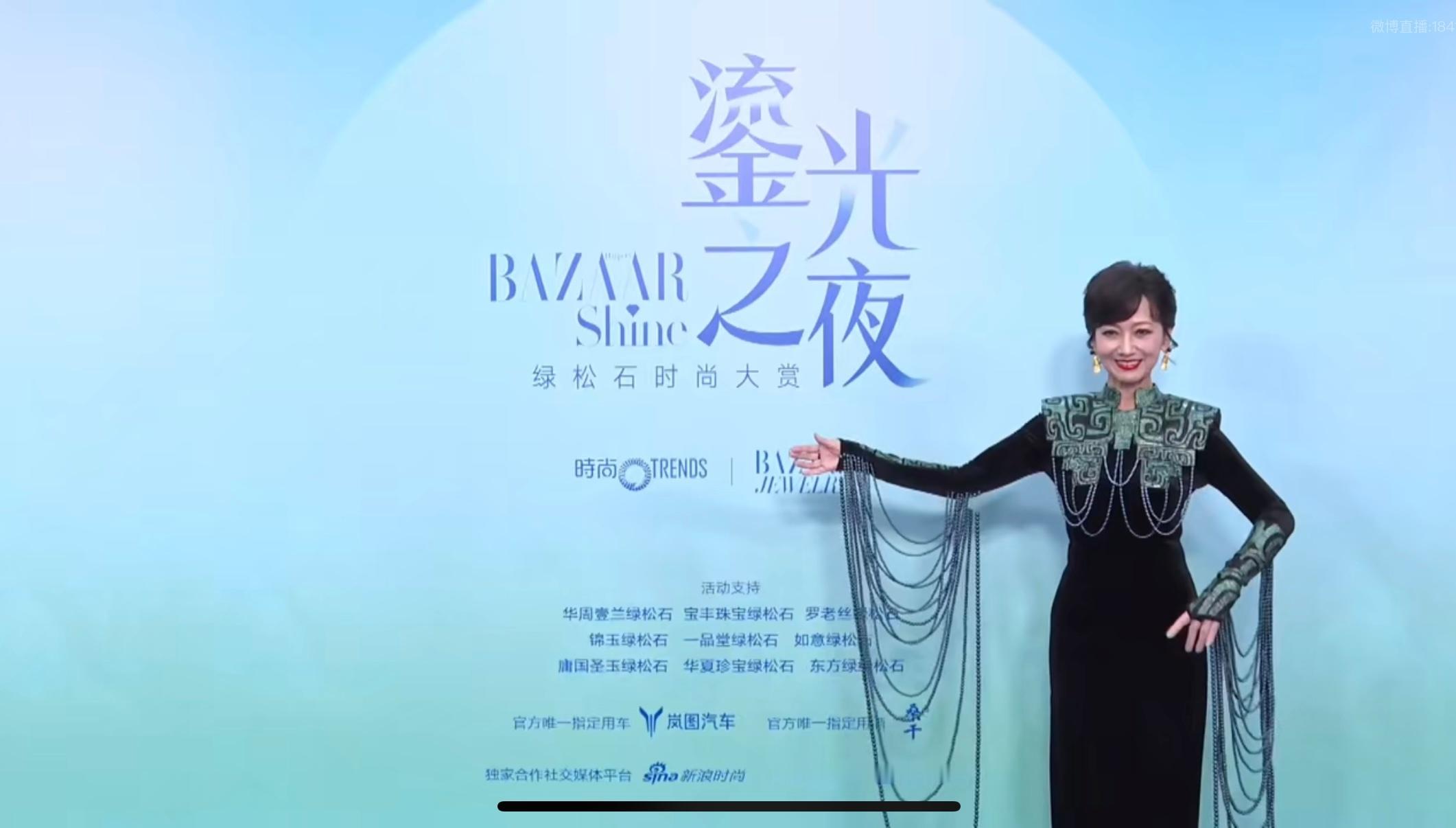 BAZAARSHINE绿松石时尚大赏赵雅芝这身黑裙太有韵味了,复古纹样+流苏设计精致又大气,红唇笑靥衬出松弛优雅,松石氛围里美出新高度。