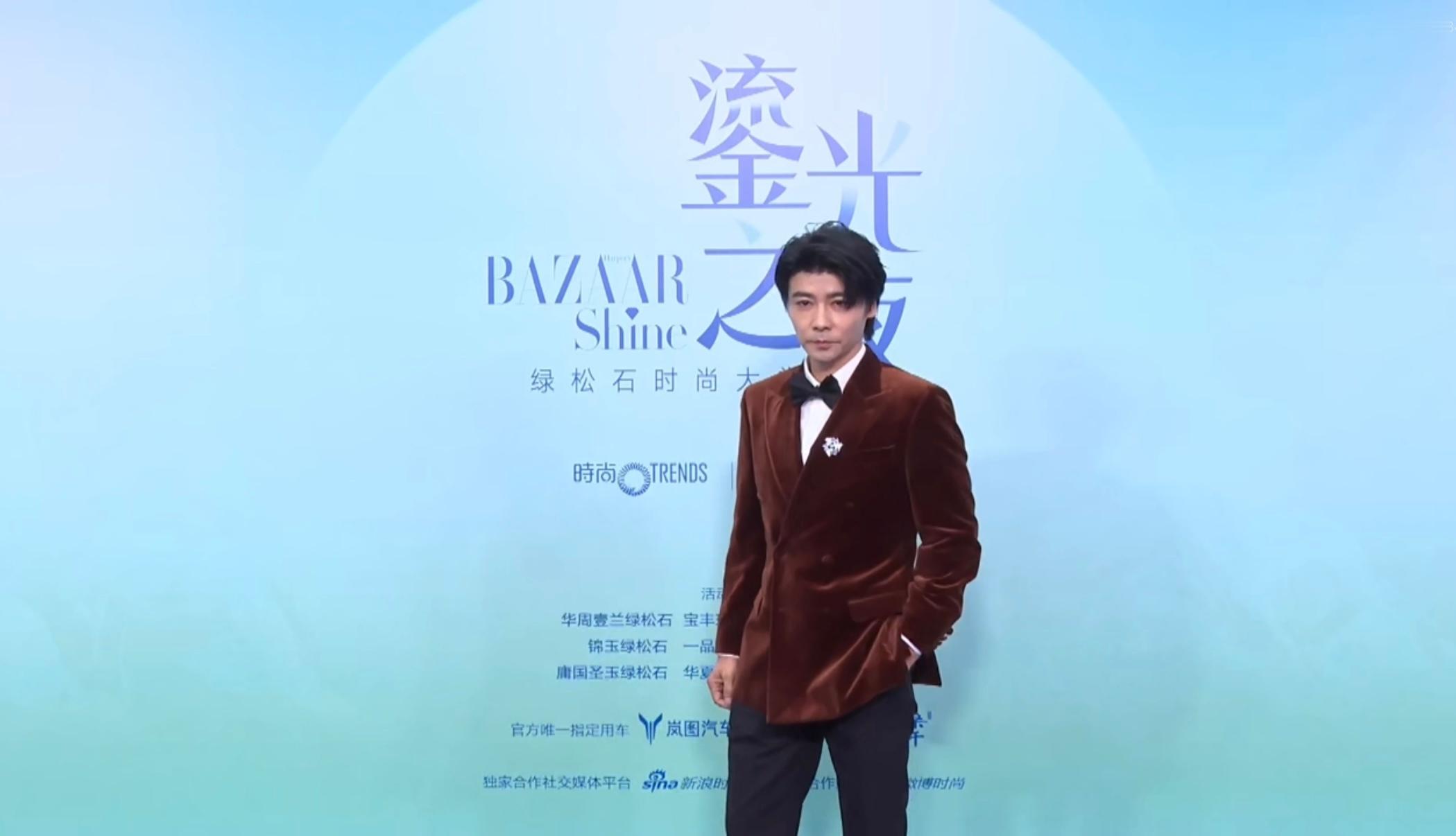 BAZAARSHINE绿松石时尚大赏张晋这身棕绒西装好绝,质感高级又显贵气,领结+胸针细节加分,松弛又有型,松石元素衬出低调精致。