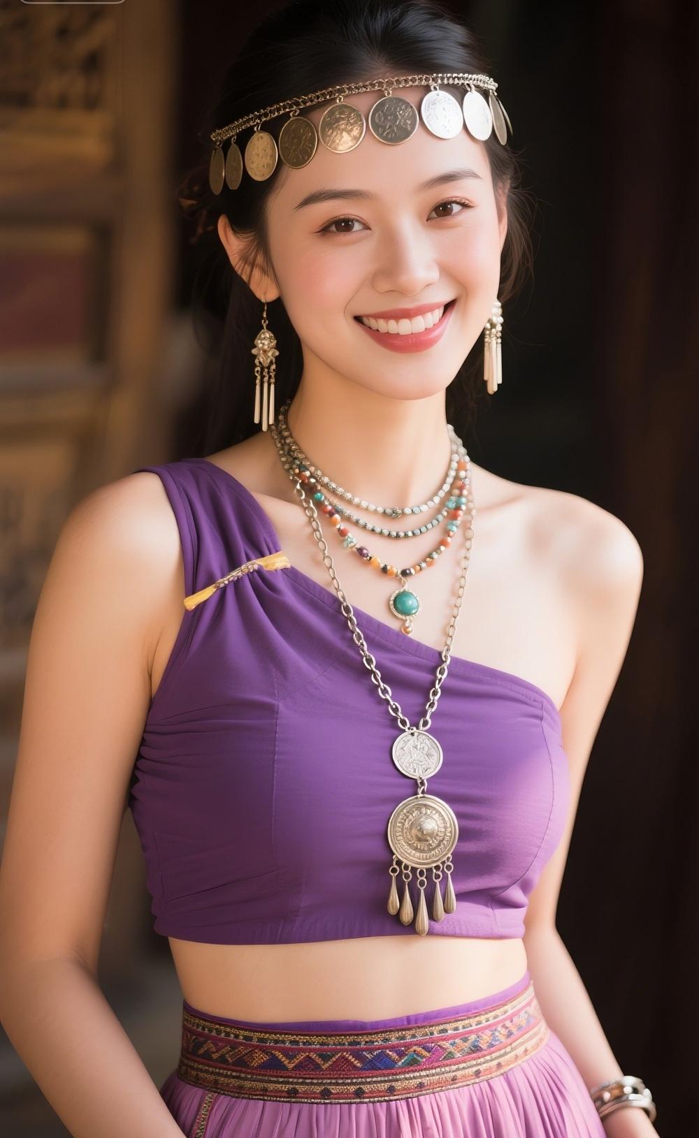 异域风情,紫色露肩上衣搭配华丽头饰,惊艳全场!