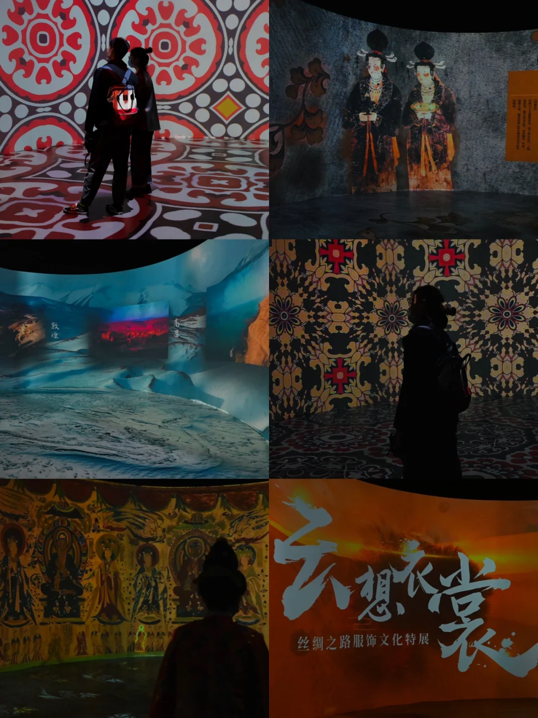 3、📸沉浸式空间-科技影像厅:投影仪映射出丝路风景,文物壁画、服饰纹路等等画面,拍照很好看。