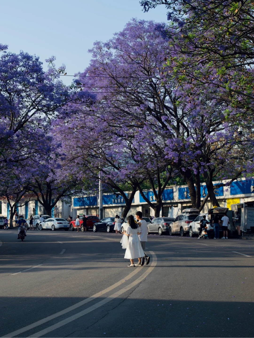 上世纪70年代,西昌就开始大规模引进种植蓝花楹。航天北路是最早种植蓝花楹的地段,也是是市区内最好的打卡点,也是4-5月来西昌必打卡的浪漫之地。📸