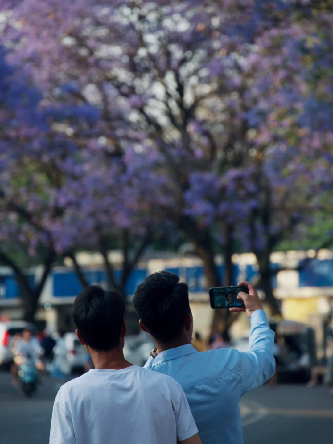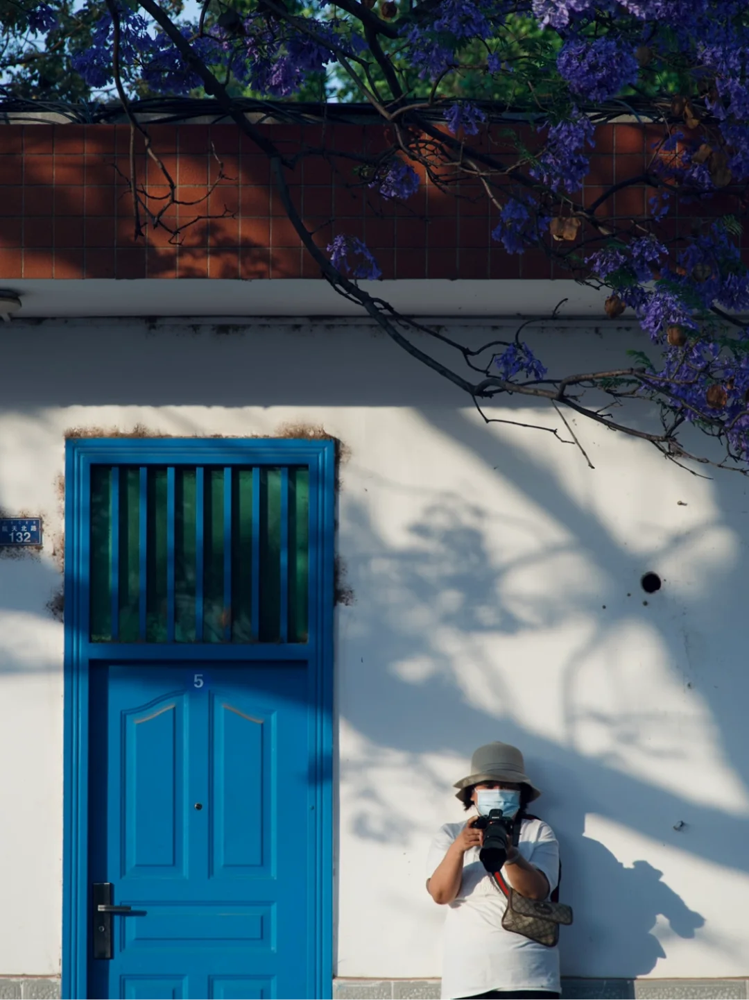 4、图四那个机位,个人很喜欢就在“李姐烧烤”过去一点的桥头🌉,门窗是蓝色的与蓝花楹相呼应,夕阳时光影也很棒。