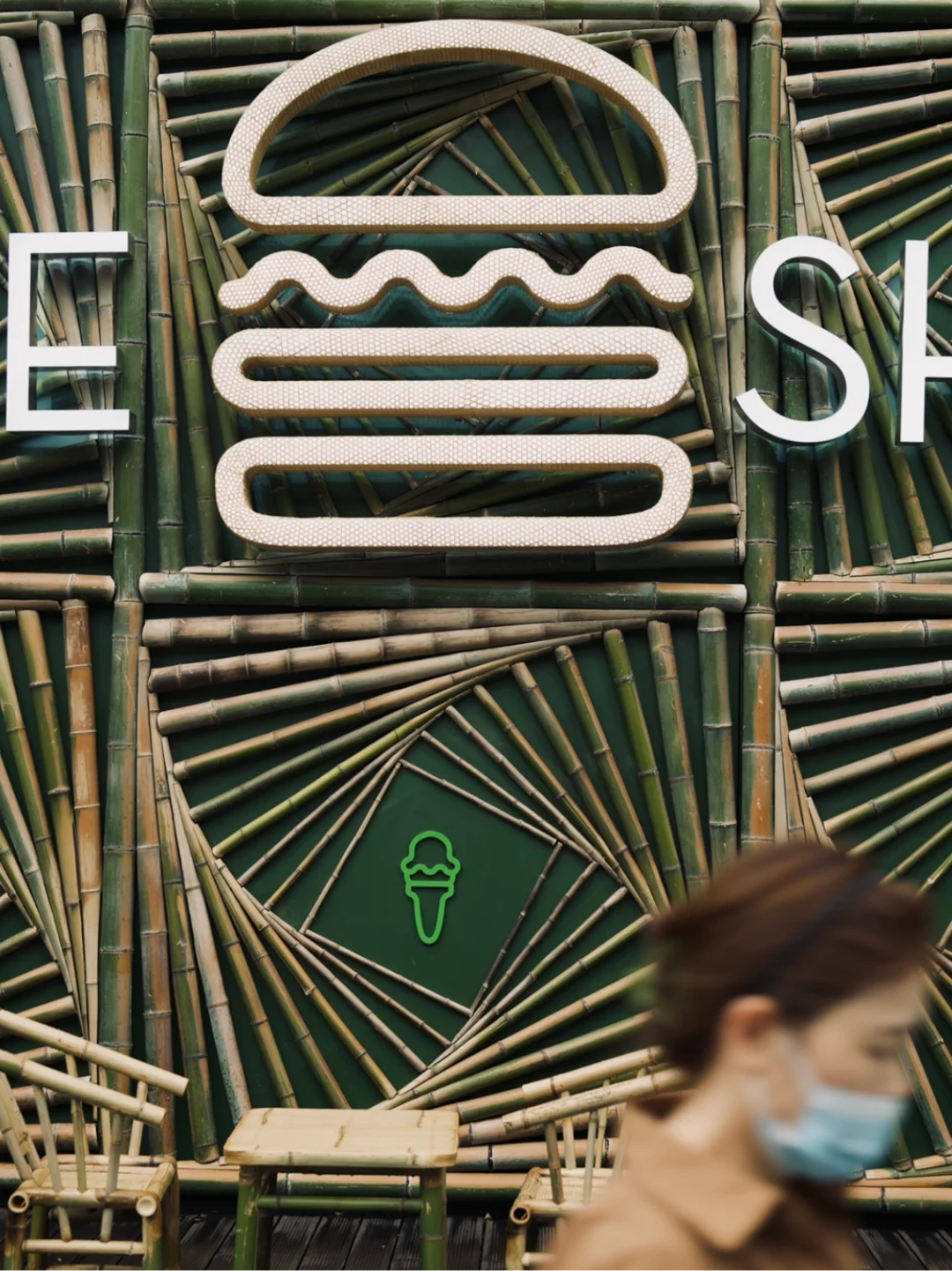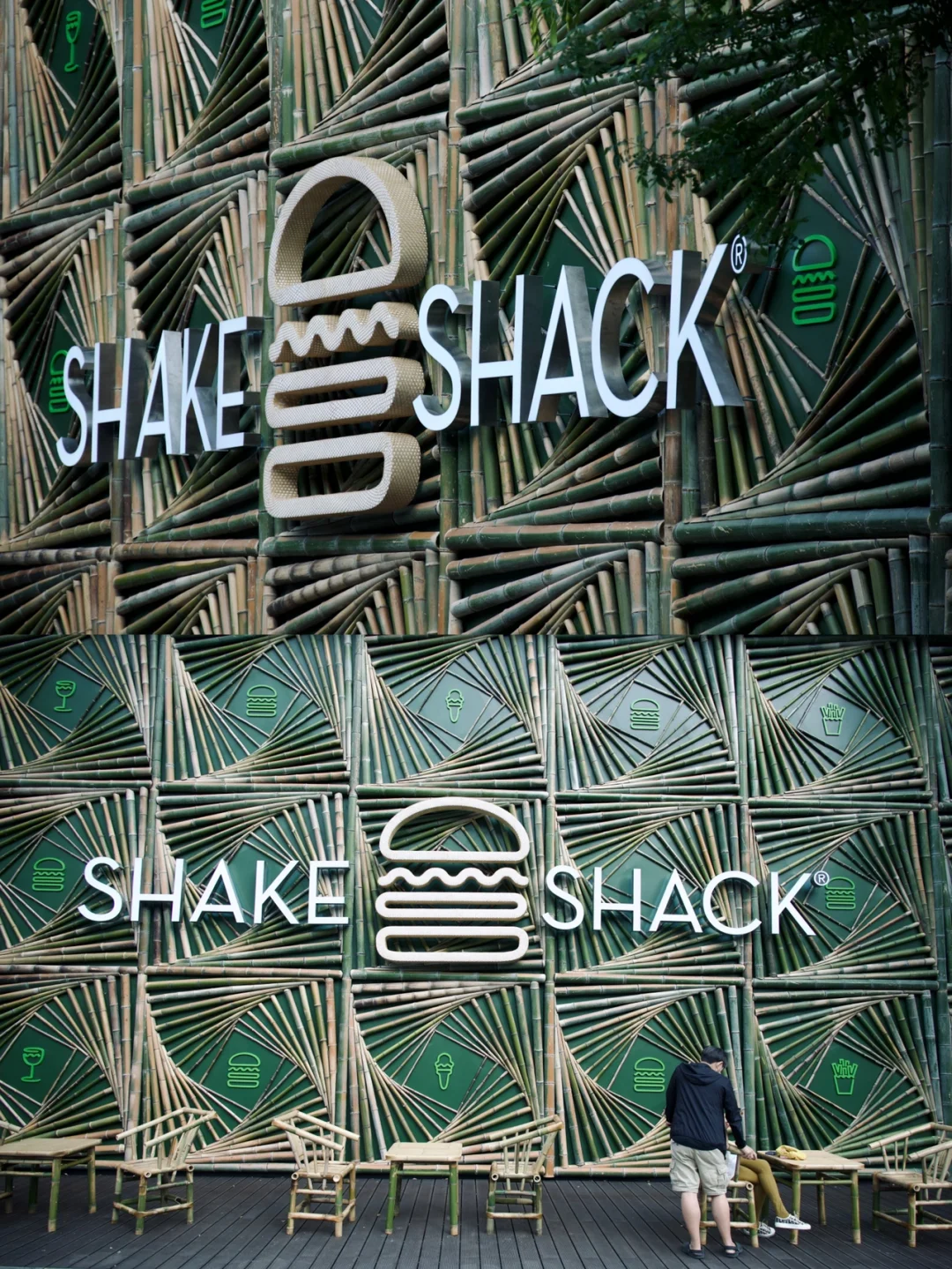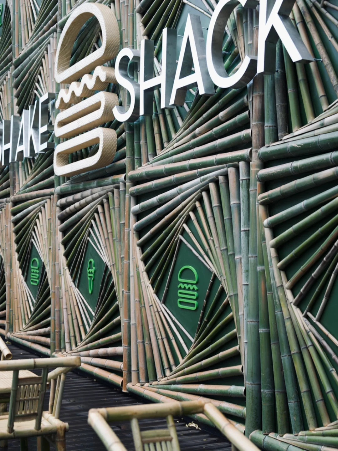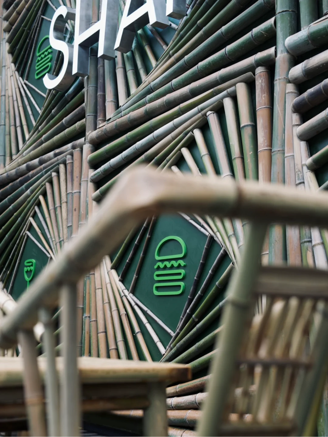这是纽约网红汉堡🍔品牌SHAKE SHACK,在成都太古里装修打围设计的艺术装置—“成都竹堡”