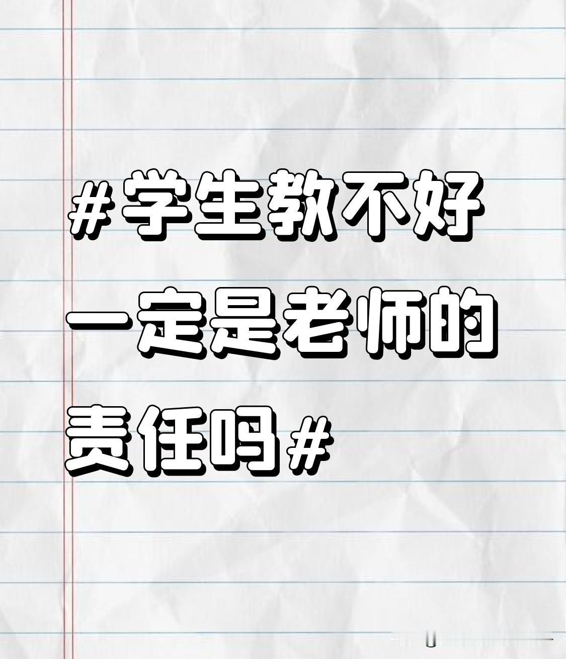 学生教不好不一定是老师的责任。教育是多方合力的结果,不能单一归咎于老师。 从学生自身看,基础不同、学习习惯差异很大。有的学生基础薄弱,课后又缺乏主动学习的习惯,成绩自然难提高。比如有些学生放学后沉迷手机,家长都管不住,老师在学校有限的时间里也很难改变。 从教学资源方面,若学校教学设备陈旧、资料匮乏,也会影响教学效果。 当然,如果老师教学方法不当,对学生的问题不闻不问,长期不改进,那肯定有责任。所以,要综合考量各种因素,不能一出现问题就怪老师。