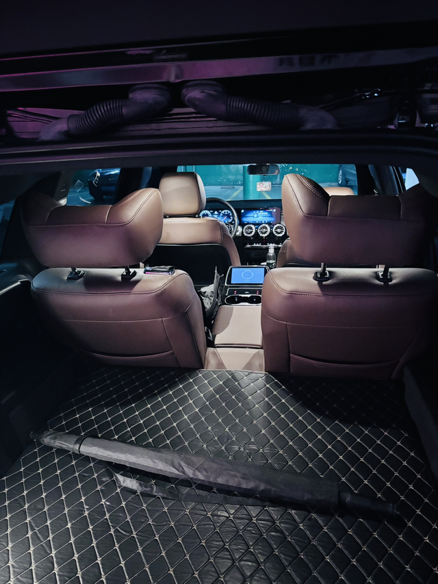 完美了舒服了 外观就不说了,个人觉得比GLC好看,开也好开,2.3年了啥毛病没有。 众所周知,GLB唯一的一个痛点就是后排座椅比较难受,包容不了,总像一根刺一样时不时扎在心里,特别是家人或者同事朋友坐车的时候,就会说到这个座椅不像30多万车的时候,言外之意总给我一种花30万当大冤种的感觉,为了解决这个问题,确实也有这个需求,一跺脚改了这个座椅,靠背直接可以打170,180度➕,电动调节通风加热按摩全都有,保留了第三排,没切,没打孔,中央扶手拿上去还是三座沙发,啥都不影响。完美