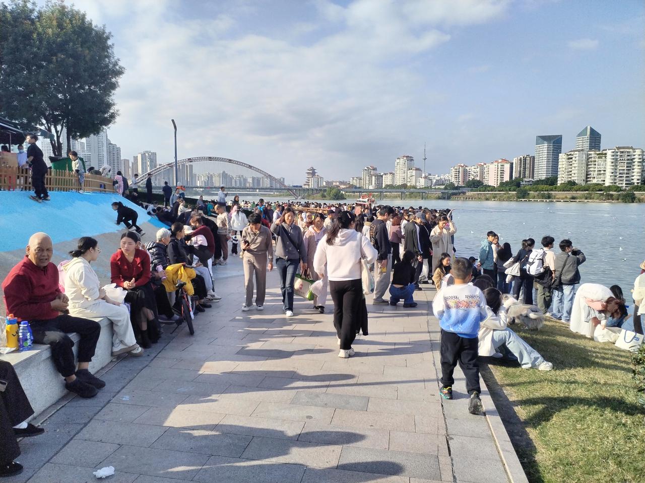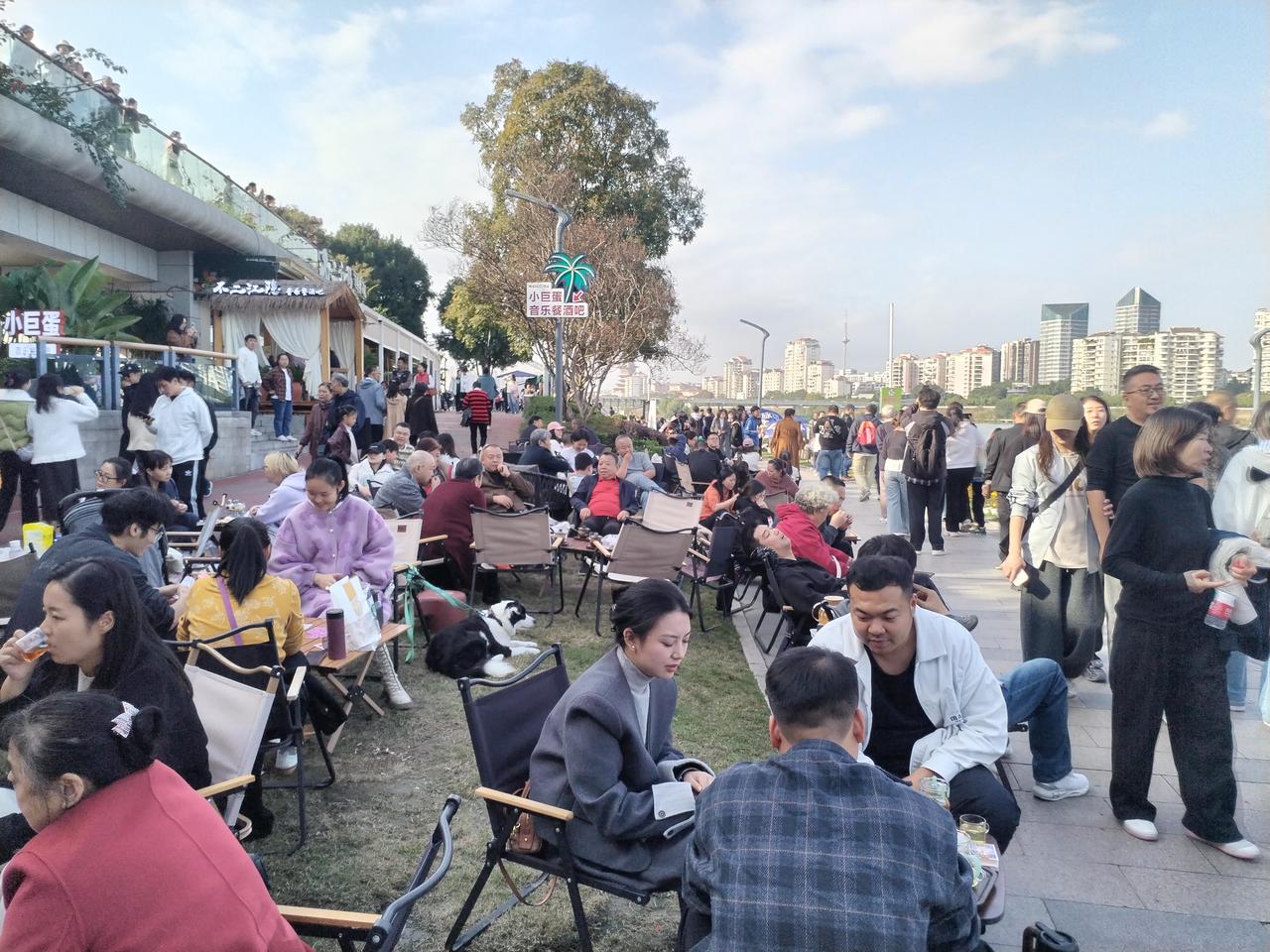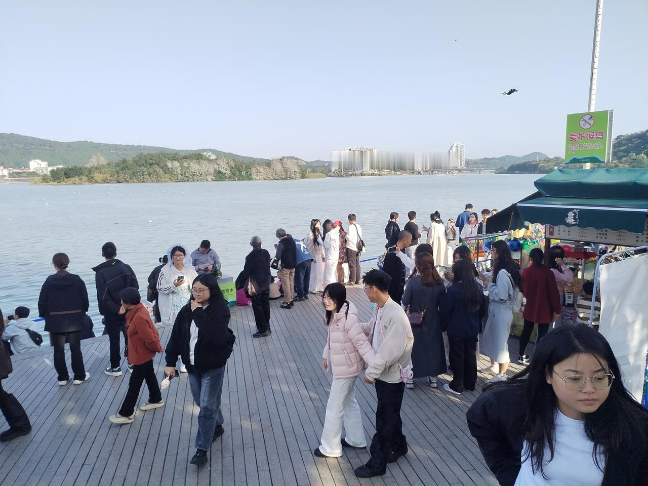 周六,绵阳是个大太阳天,冬日暖阳。今天的绵阳市三江码头公园人山人海,久违了的热闹。 三江码头亲水岸边,人们用手中食物抛向空中,吸引红嘴鸥空中飞翔捉食,有人把食物放在手上,吸引红嘴鸥,并抢拍下瞬间的珍贵照片。 今天的茶馆,小吃摊的生意也非常火,位置难找。人们在温暖的的阳光下品茶享用美食,欣赏着美丽的江滨美景,好安逸。 今天,乘坐游船的人们排起了长长的队伍。乘坐游船江上游玩,即欣赏着涪江两岸风景又能与红嘴鸥嬉戏互动,享受另外一种感受。 周未,艳阳高照,暖意融融。人们用欢声笑语,洗涤风尘,尽情的享受生活。