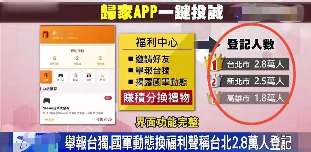 什么是人民战争?让台湾反动当局切身体会一番! 相信群众、发动群众、依靠群众, 将一切反动派淹没于人民战争的汪洋大海。 谁最了解他们?无疑是当地群众。 谁最痛恨他们?必定是当地群众。 谁期望他们受到制裁? 当然是当地群众。 这样一款APP,恰好契合当地群众的所有期待。 随着时间的推移,会收集到更多线索。 届时,当局内部必将陷入恐慌,人人自危、自顾不暇。 正所谓,得道者多助,失道者寡助。