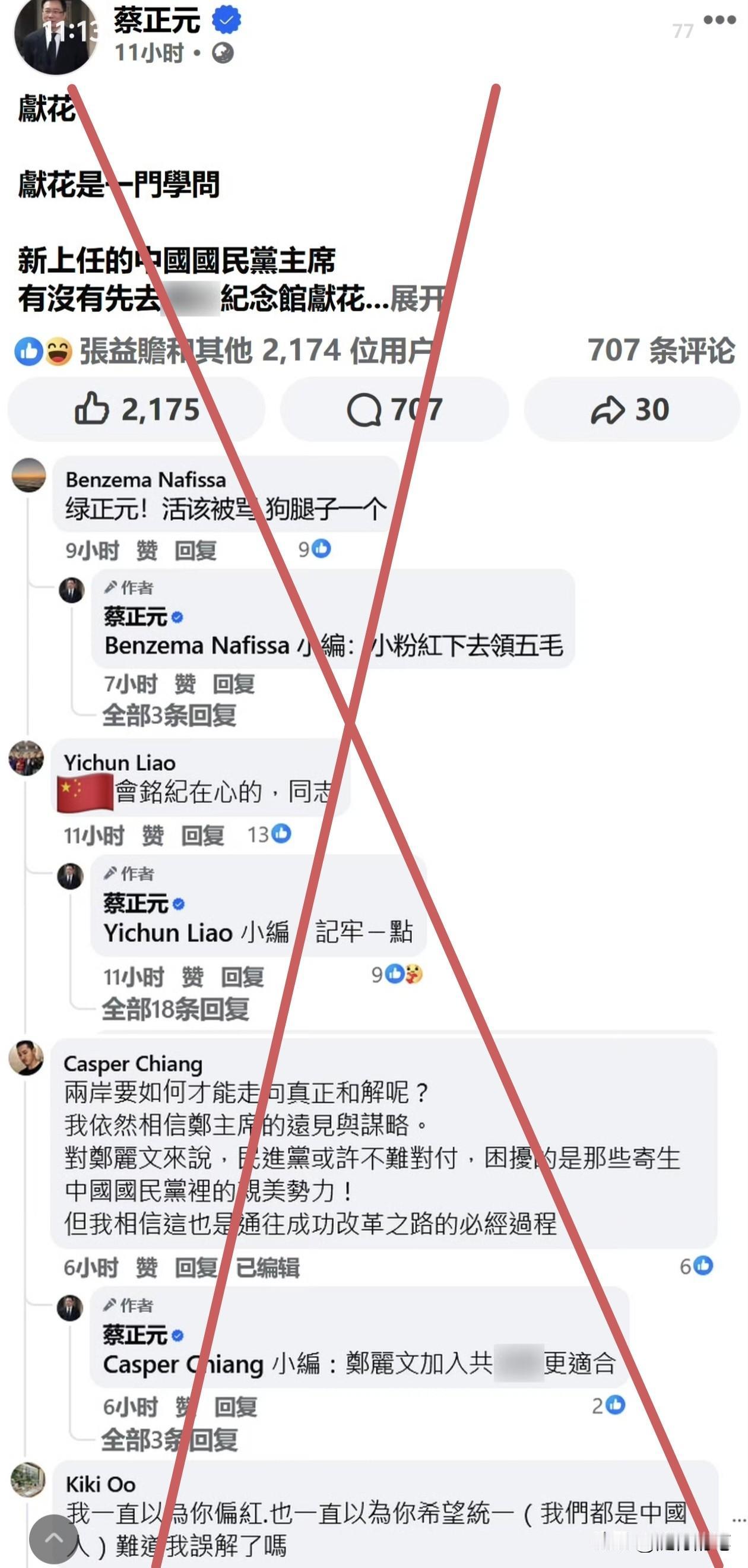 蔡正元连续发文抨击郑丽文,惹起大批网友不满,在他FB账号下面留言质疑蔡正元反应过度,没想到蔡正元居然与网友争论起来了,但是他的账号据悉不是他本人运作,与网友激烈争论的是他的“小编”。 但是,不管与网友激烈争论的是蔡正元本人还是他的“小编”,如此破防令人大开眼界,让人对蔡正元好感度大减分。 郑丽文为了两岸和平迈出这一步,蔡正元情绪却如此失控,确实令人不解。让人不禁要问,蔡正元到底是希望国民党政客多做些让两岸关系变好的事,还是希望国民党政客多做些亲美舔日的事?