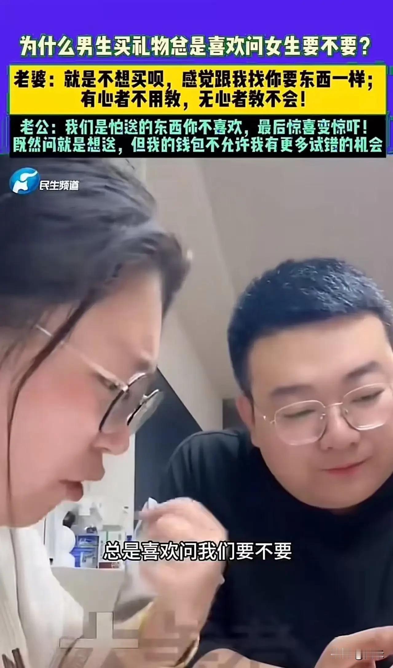 老婆怒斥:“为什么男生买礼物总是喜欢问女人要不要,就是不想买呗,感觉跟我找你要东西一样,有心者不用教,无心者教不会!”老公:男人真的太难了 !网友:当我老婆第一次给我说有心者不用教之后,我就再也没买过礼物! 老婆一句话点醒了多少男人的心,也让无数网友陷入了深深的共鸣。“为什么男生买礼物总喜欢问要不要?”这似乎成了“男人的尴尬症”——明明想表达心意,却总怕被误解为“没有心”。于是,习惯性地问一句:“你喜欢这个吗?”然而,这样的“问”,在某些女人眼里,却像是一种“无声的拒绝”。她们觉得,男人是不是根本不想买?是不是没有心?甚至觉得,男人的“用心”只不过是一场“问答游戏”。 但仔细想想,男人的“难题”或许并不在于“不会表达”,而在于“怕错”。在这个快节奏、物质丰富的时代,礼物不再只是单纯的心意传递,更像是一场“看谁更懂你”的比拼。男人怕买错,怕出错,怕自己的心意被误解成“敷衍”。于是,问一句“要不要”,其实是一种“试探”,也是一种“保护”。 而女人的回应,更像是“点醒”了许多男人:“有心者不用教,无心者教不会。”这句话,似乎在告诉男人:真正的心意,不需要多问。只要你用心去感受,用行动去表达,就会知道对方的心。可惜,很多男人在“用心”上,常常迷失在“问”的迷雾中。 网友们的评论更是一针见血:“当我老婆第一次告诉我‘有心者不用教’之后,我就再也没买过礼物。”这背后,藏着太多男人的无奈:他们的“用心”被误解、被质疑,甚至被标签化成“不够用心”。其实,男人都希望做得更好,只是少了那份“懂得的智慧”。 这场关于“礼物”的讨论,折射出的是更深层次的“情感沟通”。我们都在用不同的方式表达爱,但偏偏,最简单的心意,却变成了最难的“沟通”难题。或许,真正的答案不在“问”与“不问”之间,而在于我们是否用心去理解对方的“心”。 让我们换个角度想:也许,男人不善表达,不代表没有爱;女人不喜欢被问,也许只是希望那份“心意”能更自然、更真诚。只有彼此用心去“读懂”对方,才能让爱变得更纯粹、更温暖。 所以,下次当你看到“问要不要”的时候,不妨换个角度想:那是“怕错”的心情,是“在乎”的表现。只要我们都多一点理解,少一点误会,爱的“礼物”就会变得更加珍贵和真实。女生问你要礼物