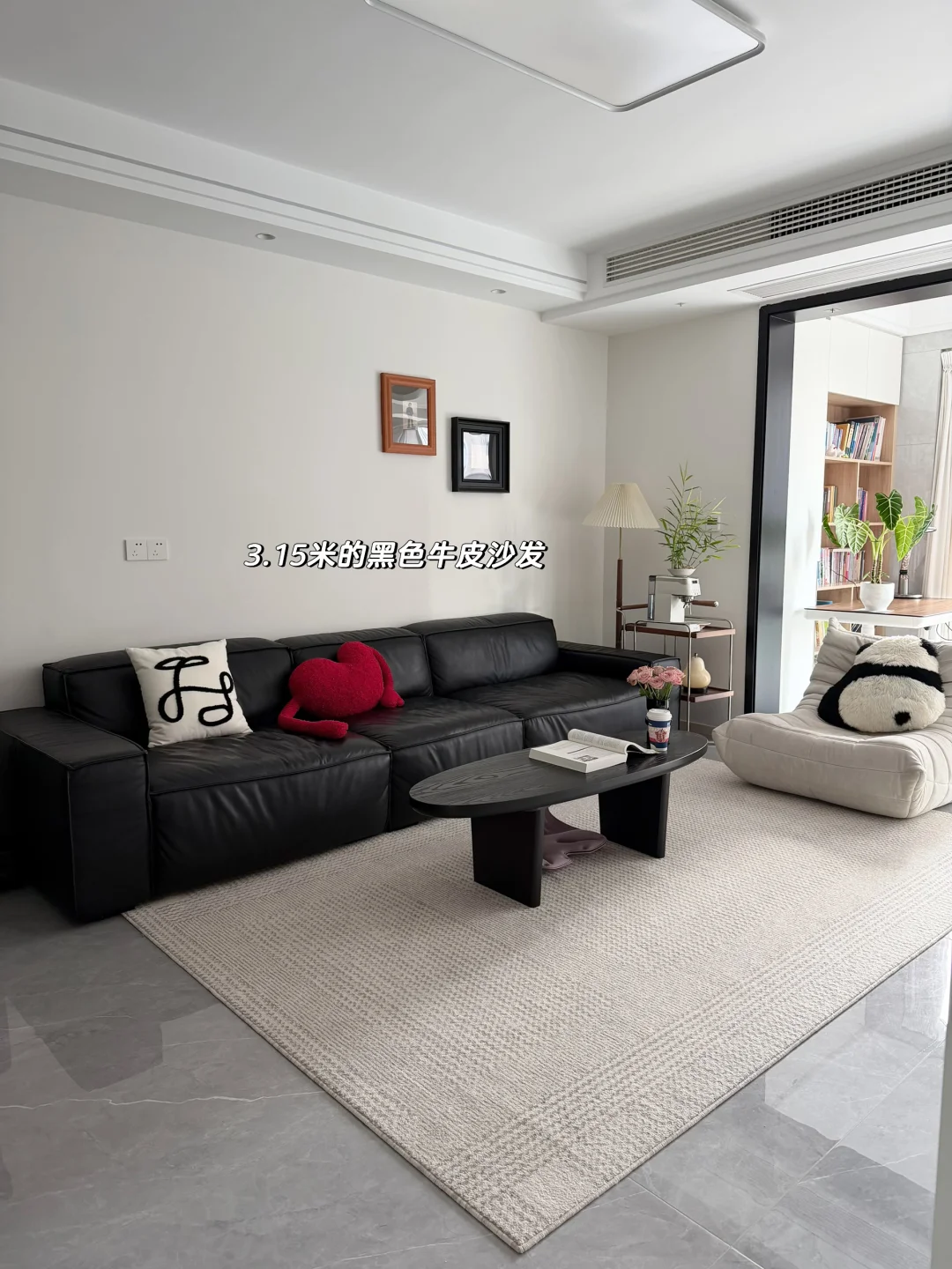 客厅满墙电视柜➕灰色地砖➕黑色沙发真不错!