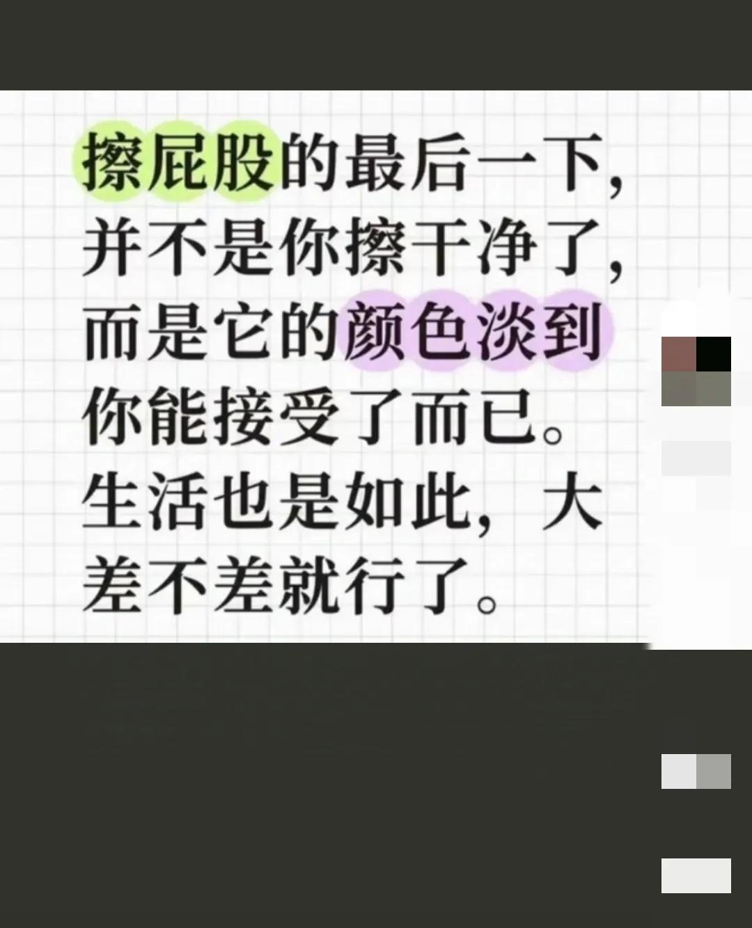 生活本来就是凑合、差不多、大差不差 如果把生活过到极度的精致 那不是过生活 那是在搞科研 搞科研会让你生活的很累 生活本来的样子就是让自己开心 不是把自己搞累 你说呢?