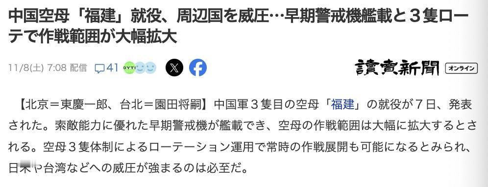 日本军官:中方军队若“入侵”台湾,美日将击沉“福建”号航母 日本舆论普遍对中国第三艘航母入列感到恐惧,宣称对周边邻居是巨大威胁。但同时日方也开始做好应对来自中方的“威胁”。 尤其是日本已经开始为所谓的“台湾危机”做军事准备,日方认为他们有能力打击中方航母和军舰。日本舆论认为,中方第三艘航母的服役势必会加强其在东海、南海和太平洋的活动,将对日本的安全环境产生不利影响。 日本《时事通讯社》援引日本防卫省一位官员的话表示:“一旦‘福建’号服役,我们将不得不做出与以往不同的行动选择。”“如果中国军队“入侵”台湾,美国军队和日本自卫队将不得不优先击沉“福建”号,这将会大大增加中方军舰武力收复台湾的阻力”。 日本海上自卫队军舰近期在冲绳县靠近台湾的国际水域进行了水雷战训练,训练内容包括布设和回收水雷及模拟水雷。日本《朝日新闻》认为,日本这一军事行为是为了应对“台湾危机”,一方面是为了切断中方的航运补给线;一方面是为了阻击中方军舰冲出第一岛链。 再联想到日本首相高市早苗宣称台湾若遭到“攻击”,日本将行使集体自卫权。看来日本人是铁了心要跟中方碰一碰了。日本若参战,中方不妨借机打残日本,并效仿美国驻军日本,并收回琉球群岛。福建舰入列对中国国防发展有何助力 台湾有事论