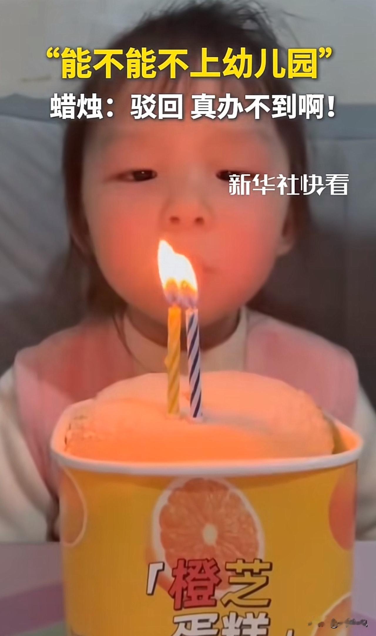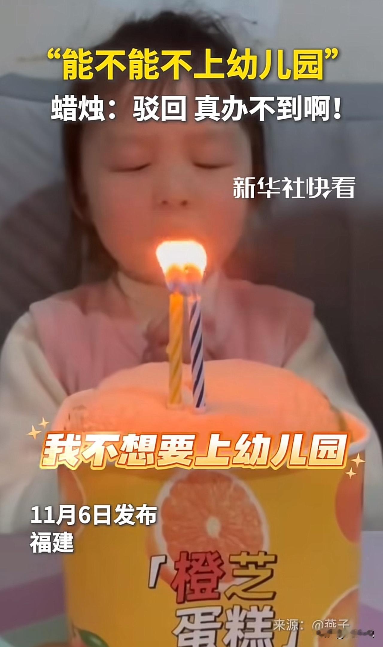 #蜡烛“驳回”萌娃不想上幼儿园请求#笑翻!福建一家长脑洞大开,用“吹不灭蜡烛”逗娃,没想到小女孩许愿“不上幼儿园”被狠狠驳回! 视频里,小女孩对着蜡烛认真许愿,嘴里念叨着“不上幼儿园”,随后深吸一口气用力去吹。可不管她怎么使劲,蜡烛灭了又瞬间复燃,反复几次后,小孩姐看着顽固的蜡烛,一脸茫然又无奈,模样逗趣又可爱。家长将这一幕拍下,配文调侃“愿望被驳回”。 此事引发网友热议,有网友说:“笑不活了!这蜡烛是幼儿园派来的卧底吧”! 也有网友称:“小孩姐的绝望都要溢出屏幕了,求此刻心理阴影面积”! 还有网友表示:“同款娃!我家娃也天天盼着不上幼儿园,太真实了”。 周少想说这温馨又搞笑的一幕,藏着亲子间的小情趣。家长用简单的小道具制造欢乐,既记录了孩子的童真瞬间,也给日常增添了趣味。 而小女孩“不上幼儿园”的愿望,更是戳中无数家长的共鸣。这届娃对幼儿园的“抗拒”,总能以最可爱的方式呈现。这样的亲子互动没有刻意表演,满是真实的快乐,难怪能快速圈粉,让人看完忍不住嘴角上扬。 对于这位女孩许愿不上幼儿园蜡烛一直不同意,大家怎么看呢?#寻美三湘# #长沙新朋友#