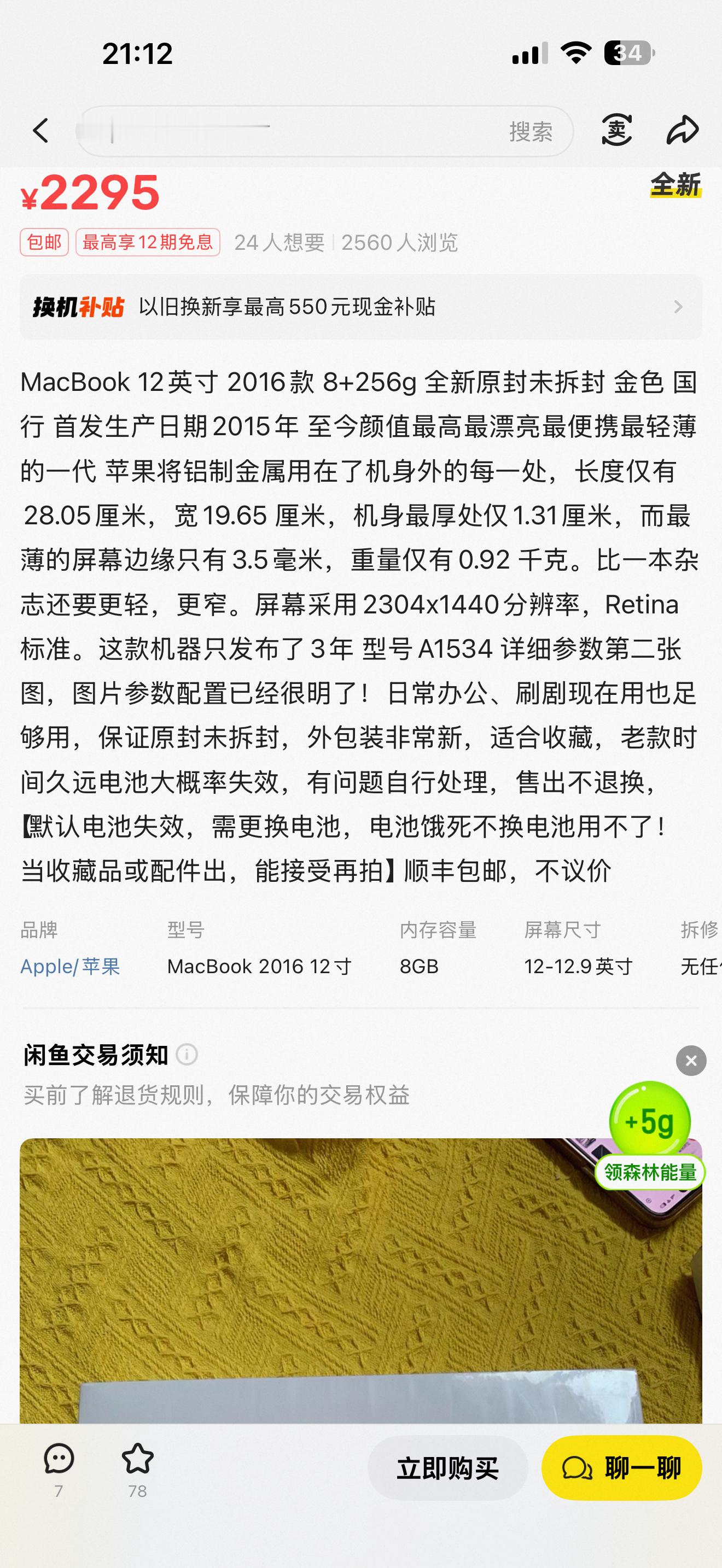 准备买台12寸的MacBook,搜了下闲鱼居然还有全新未拆封的卖,不过2300还是有点舍不得[允悲]