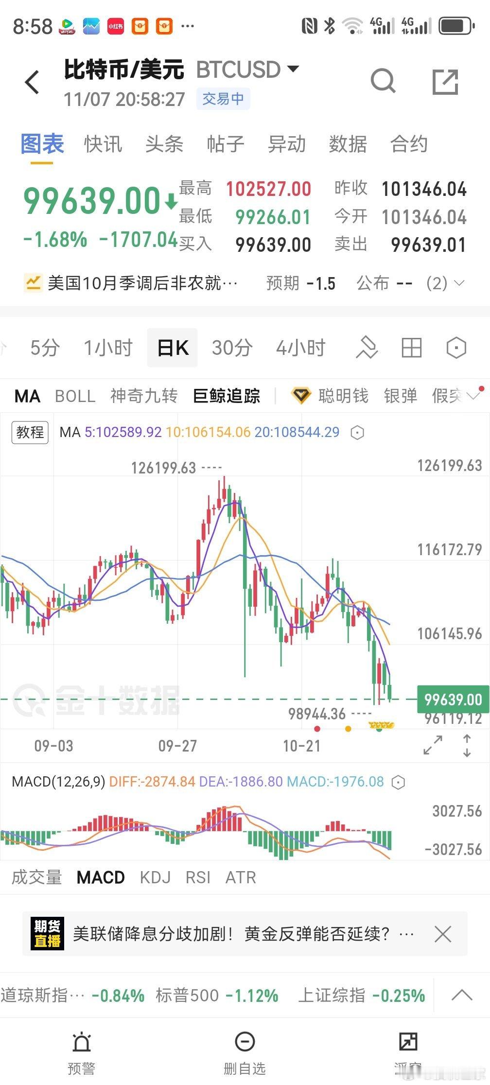 比特币早以太坊一步!日线级别仍是支撑周线级别仍是有调整出现。币圈