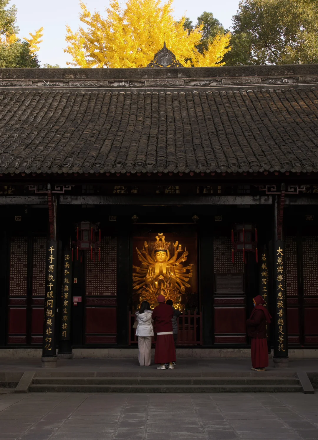 📸拍摄地点:图一图二:四川博物院正门;图三:青羊宫老庄书院;图四:文殊院极乐福地;图五:草堂东路;图六:锦绣桥;图七:银杏路;图八:百花西路;图九:文殊院圆通殿。