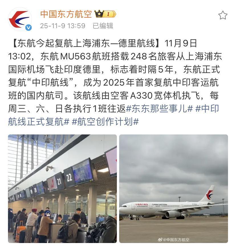 时隔5年,东方航空再次复飞上海浦东至德里航线! 这意味着两个大国之间最大的城市终于有航班了,话说到底是德里也算是印度的第一大城市,还是孟买算印度的第一大城市? 其实在今年以前,由印度前往中国大陆还是挺麻烦的需要转机,此次恢复绝对是非常利好的消息。 各位是怎么看的?欢迎评论区留言。