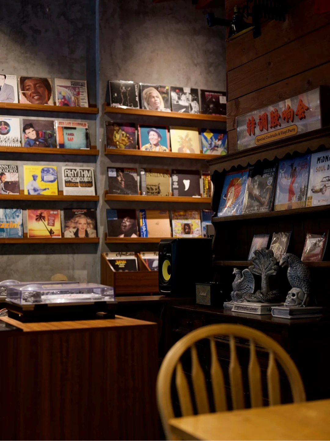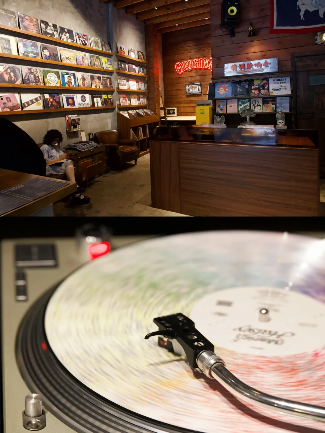 店里有一处特调胶响会的🪩DJ台,如果你有喜欢的唱片,可以来这里当一会儿DJ,播放的唱片只有不是太流行或者金属、大概率可以放,播放的唱片要给店员说,最好的电话提前沟通。据说马赛克乐队🎸的主场夏颍也偶尔来这里玩,说不定哪天你就能偶遇。