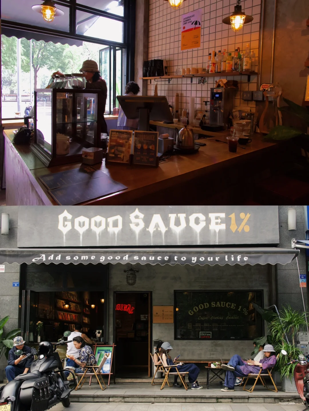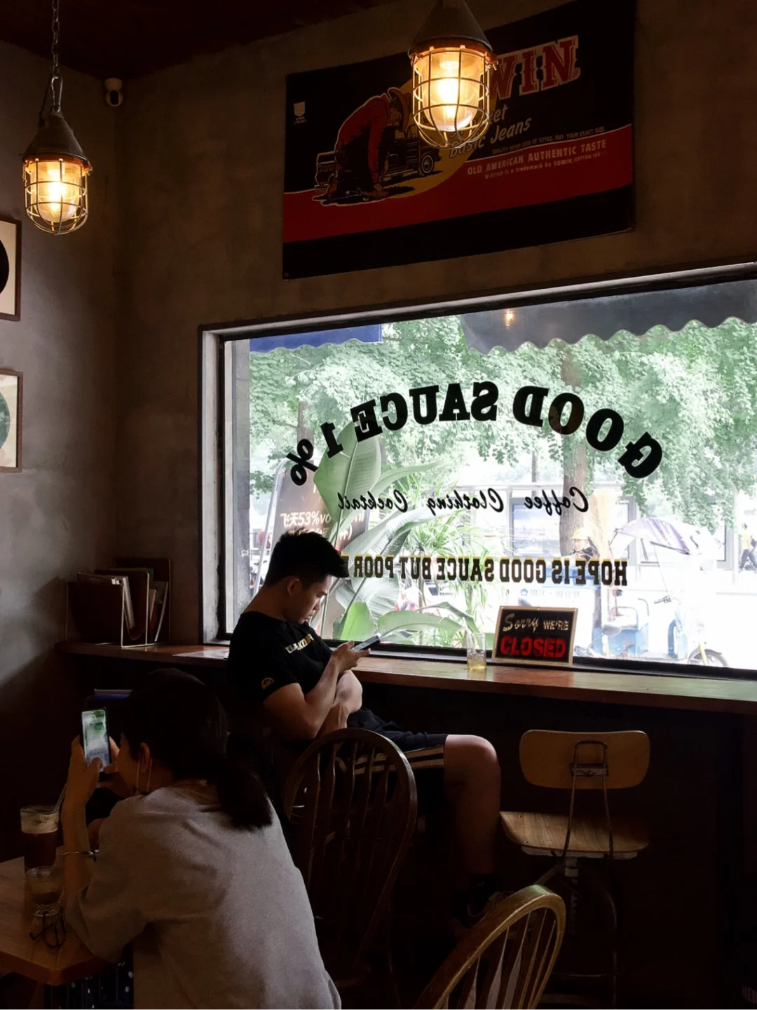 Good Sauce 1% 装修的风格是美式乡村复古风,看似粗矿但是细节丰富,很多陈设很用心,主理人说店里有些家具从美国淘回来的,比如许多20-30年代的老矿灯💡,整个装潢相当的oldschool。去的时候店门口还要一台重型机车,它是老板的心头爱。